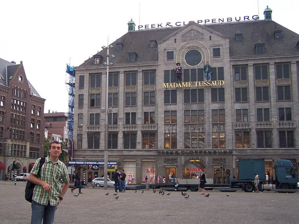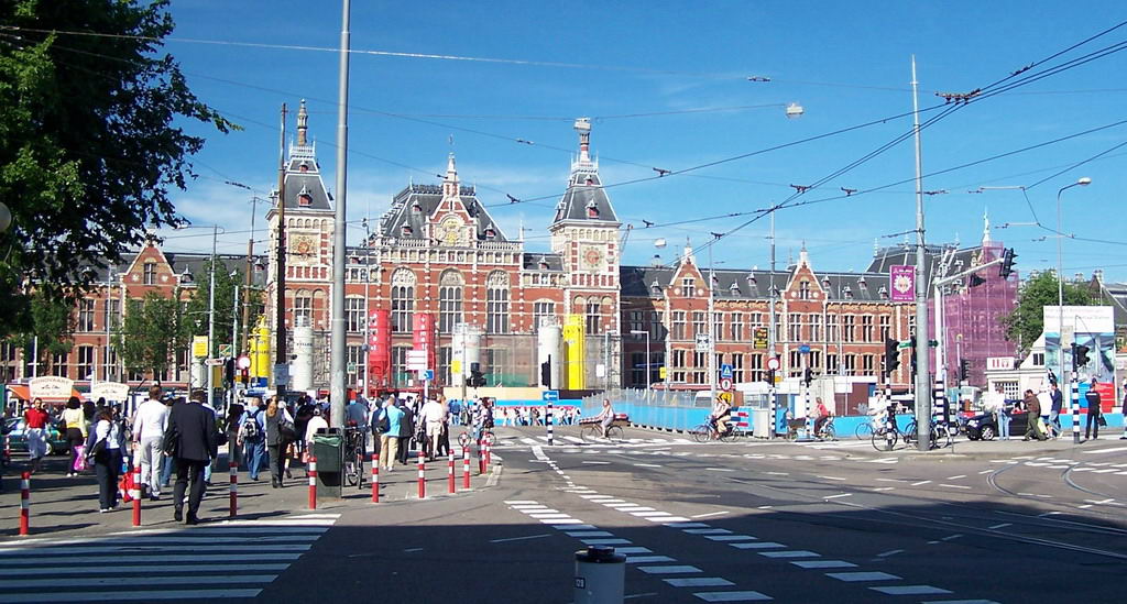 Амстердам меня встретил отличной погодой, толпами туристов и строительными работами вокруг ж/д вокзала Centraal Station, что не дало его толком сфотографировать. Первым делом мне надо было найти отель, и его я нашел довольно быстро, как только смог сориентироваться в надписях straat, steeg, gracht, plein и прочих обозначениях и вышел на центральную площадь Амстердама - площадь Дам, туристов на ней было непривычно много, ими все вокруг было просто усеяно.