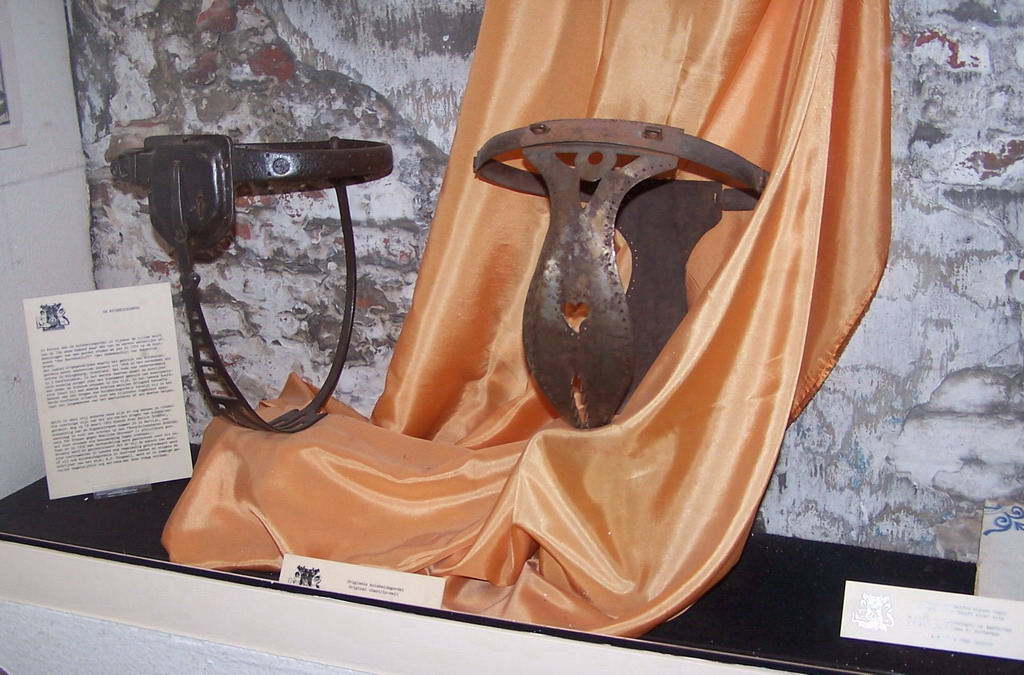В музее выставлены оригинальные женские пояса целомудрия (~ 12 в. и 16 в.), металлическое изобретение, также знакомое как "флорентийский пояс" и "пояс Венеры", при взгляде на них невольно задаешься вопросом, как в этих штуках умудрялись ходить, и удивляешься - чего только не выдумывали раньше:-)