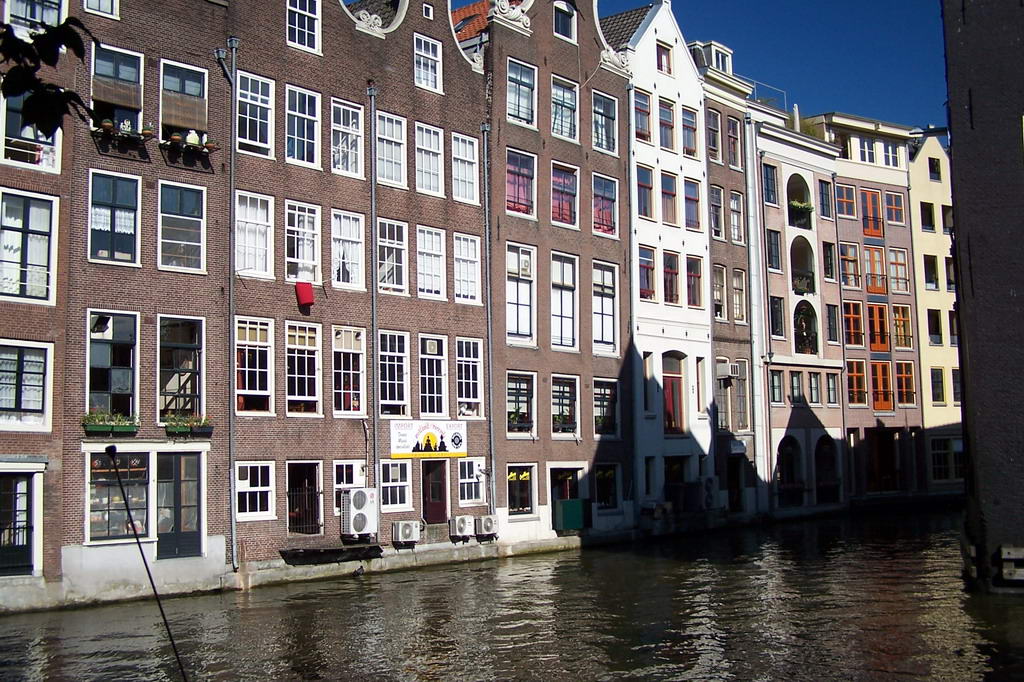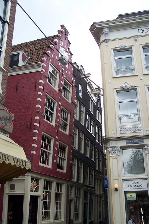 Часть домов покосились - это результат экономии на сваях при строительстве, ведь Амстердам стоит на заболоченной местности, иногда кажется, что дом вот-вот должен упасть, но он каким-то образом стоит:-) Вплоть до 16 века город застраивался деревянными домами на сваях, поскольку плотные слои почвы залегали на глубине до 12 метров. Такой метод строительства дал в свое время повод Эразму Роттердамскому назвать Амстердам единственным в мире городом, в котором люди живут на деревьях.
