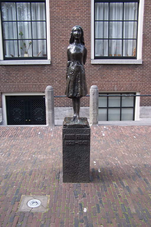 Анна Франк - еврейская девочка, ее судьба и дневники, переведенные на множество языков, являются символом жестокости нацизма и сопротивления ему. Во время фашистской оккупации около двух лет пряталась семья Анны в задней части дома, в которую вела дверь, находившаяся за шкафом. Потом их предали, арестовали и увезли в лагерь, только отец Анны пережил войну. Дом, где укрывалась А. Франк сейчас один из наиболее посещаемых музеев Амстердама.