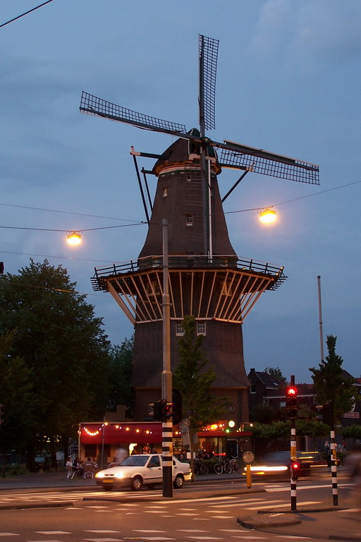Один из символов Голландии - ветряная мельница. Ветряные мельницы в Голландии служили не только для размола зерна, но и для откачивания воды (Голландия значительной частью расположена ниже уровня моря). В государстве есть даже День насосных станций и Национальный день ветряных мельниц. Многие из голландских ветряных мельниц имеют сейчас возраст более 500 лет, но все еще находятся в рабочем состоянии, та мельница, что вечером сфотографировал я, является памятником, в ней находится кафе.