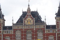 На следующий день мне надо было уже уезжать с большим багажом впечатлений с вокзала Centraal Station, фотография которого тут приведена. Сам вокзал находится на искусственном острове залива Эй, который был специально под эти цели сооружен в 19 в. Здание вокзала представляет собой смесь готики и голландского Ренессанса.