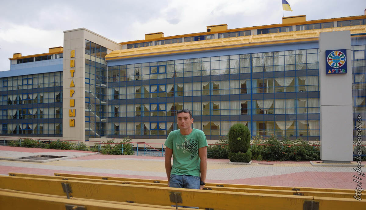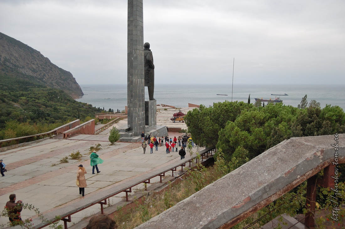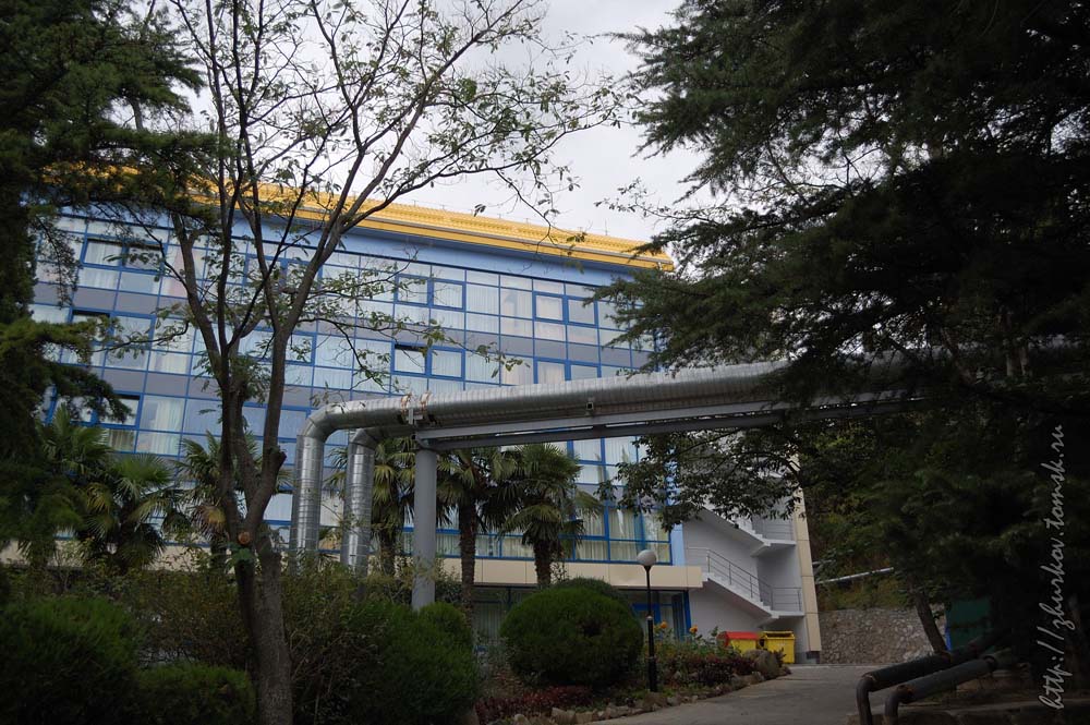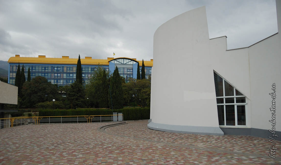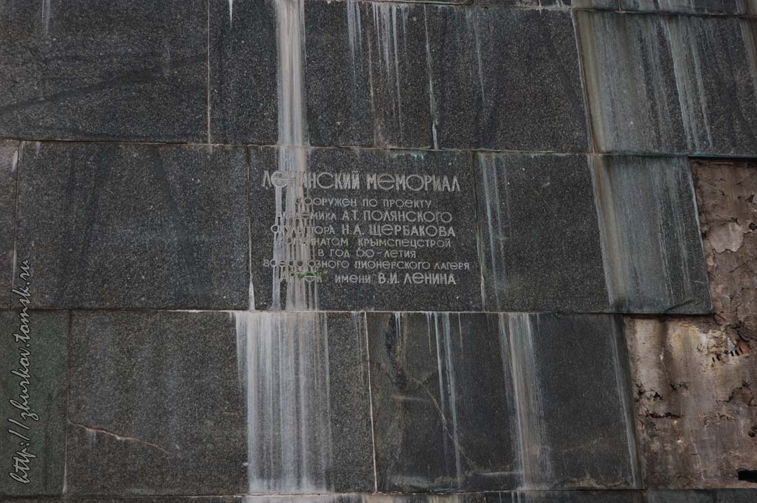 После просмотра фильма стало понятно, почему в Артеке не играют в нее: "Зарница" воспитывает в умах детей образ врага, мотивирует на агрессию и жестокость во имя "благих" целей, короче, готовит ребенка к войне. Подобное для духа Артека было бы просто нонсенсом. Потому в Артеке основной игрой был "Снайпер" - это игра с мячом.Здание дружины "Янтарная" - самое близкое к морю из всех дружин лагеря "Горный" (в него еще входили дружины "Хрустальная" и "Алмазная"). По замыслу архитектора А. Полянского здания дружин "Горного" представляли собой четырехэтажные (четырехпалубные) белоснежные морские лайнеры, в кубриках которых жили дети. Окна "кубриков" выходят в сторону моря, я жил на последнем этаже, в комнате рядом с той, где на приведенном фото из старого альбома об Артеке стоят пионеры:) Окна были раздвижные во всю стену. В 2004 г. здание "Янтарной" было реконструировано и обшито все тем же сайдингом. Крыша, которая являлась открытой палубой лайнера, где собирались отрядом, ныне превратилась в еще один этаж. Внутри помещений также сделали ремонт, сейчас удобства не на этаже, как было ранее, а в каждой комнате, повесили шторы. На первом этаже появилась столовая. Над зданием реет украинский флаг, но детей, для которых вроде бы это все и предназначено, что-то не было видно. По контингенту отдыхающих, которых я наблюдал, создалось впечатление, что это уже не детский лагерь, а семейный пансионат. Дружина носила имя А. Гайдара, т.к. он здесь жил в 30-х годах, на здании висела памятная доска, как видно из фотографии, сделанной в 1990 г., но после реконструкции ее не стало. Перед зданием дружины расположена площадка, где каждое утро проходила утренняя зарядка, и вечерами так называемые "массовки", а попросту - дискотеки. Вообще, о том, что в Артеке сейчас отдыхают дети, о чем написано, например, на сайте центра, вокруг ничего не говорило. Артек был пустой, изредка ходили отдыхающие - в основном взрослые, и лишь вдали с артековского стадиона доносился какой-то шум. Я пошел в ту сторону, там ведь находилась главная достопримечательность Артека, видная издалека, - "Ленинский мемориал". Мемориал огромен, памятник Ленину - самый высокий в Украине. Сейчас все тут пришло в запустение - лестницы, ведущие наверх к мемориалу, перекошены, вокруг все поросло бурьяном, из-под плит мемориала прорывается трава, облицовка местами разрушена. Говорят, сооружение расположено в оползневой зоне и потому медленно съезжает по склону вниз. Мемориал был построен к 60-летию Артека в 1985 году. Высота памятника Ленину составляет 19 метров, а пилоны за его спиной достигают 42-х метров. Уже в 1990 году мемориал был не востребован, помню, люминесцентные светильники под перилами вокруг мемориала тогда уже были проржавевшими и местами разбиты или отсутствовали. Однако мемориал - это не только памятник Ленину, под мемориалом расположен небольшой концертный (лекционный) зал. В нем мы отрядом ставили спектакль "Все начинается с любви...", я на сцене читал стихи В. Маяковского: "В этой теме и личной, и мелкой..." (из поэмы "Про это") и А. Пушкина: "Я вас любил: любовь еще, быть может..", и помню слова до сих пор:-) В спектакле участвовали только дети, вожатые направляли прожекторы:) Зрителями являлись другие отряды. Сейчас же, судя по виду и решеткам на входе, там давно уже ничего не ставится. В 1990 году мы регулярно проходили мимо мемор