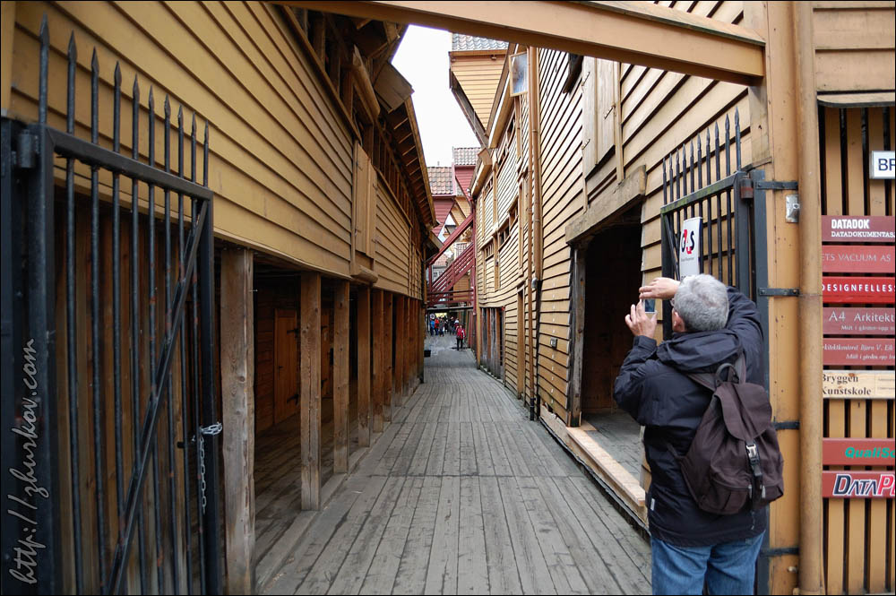Берген Берген - второй по величине город Норвегии, расположен на западе страны, столица фюльке Хордаланн. В незапамятные времена был столицей Норвегии. Сейчас численность населения около 250 тыс. чел., есть университет. В Бергене я оказался в 2009 году по работе, связанной с разработкой нового способа бурения. Прямых рейсов из РФ туда нет, добираться до него приходилось с пересадками, то через Копенгаген, то через Амстердам, то через Осло, а самый удобный, но дорогой путь пролегал через Франкфурт и Lufthansa CityLine. Летать же Скандинавскими авиалиниями (SAS) мне не понравилось - при довольно высоких ценах на билеты в полете даже не кормят, как у какого-нибудь дискаунтера с гораздо более низкими ценами. Также стоит вспомнить и то, что впервые в жизни мой багаж не прилетел вместе со мной именно на рейсе этой авиакомпании, оставшись ночевать в Осло Гардемуэн.Поскольку принимающая сторона все финансировала - и проживание, и еду, то в первые дни показалось, что очутились при коммунизме:) Проживали в таком доме одной из местных компаний, сконструированном в 2 этажа из модулей, которые могут перевозиться трейлером. Там было предусмотрено все - одноместные номера с WC/душем, круглосуточная столовая, инет, сауна, стиральные машины/сушилки, телевизоры и даже велосипеды для прогулок, неподалеку был простенький спортзал с солярием, в общем, все условия для работы вдали от дома:) Сами эксперименты проводились буквально в нескольких десятках метрах от дома на уже подготовленной площадке принимающей компании, что было также очень удобно. На месте пришлось пройти курс по электробезопасности при работе с низким и высоким напряжением в соответствии с норвежскими DSB-нормами, в частности FSE-2009, по окончании чего выдали такой диплом. Находилось это в местечке Rådal (Родал), неподалеку были горы/лес, там можно было покататься на велосипеде по обозначенным маршрутам. Много озер и Фанафьорд, на берегу которого есть пляж, где можно пожарить что-нибудь на гриле и/или покупаться (в редкие теплые летние дни), вообще, как обычно в Норвегии - очень красивые места. В город ходил автобус, кроме того, туда можно было добраться на велосипеде по специальной дороге для велосипедов, которая, как говорят, является частью трансъевропейского веломаршрута, он отмечен специальным указателем. За время менее полугода нашего пребывания в Норвегии я успел накатать на велосипеде более 400 км. Расписание автобусов на остановках непонятное, особенно в сравнении с Германией, т.е. там указано время отправления/прибытия не конкретно от остановки, на которой ты находишься, а от конечных или крупных по данному маршруту. Кроме автобусов в самом городе ходят троллейбусы, а в наше пребывание там строилась трамвайная ветка согласно всем современным технологиям - такое у нас еще не скоро будет. Также развито водное сообщение, из Бергена ходят суда в различные города Норвегии, в т.ч. и туристические. Город Берген сам по себе небольшой, многоэтажек в нашем понимании практически нет, в основном малоэтажные частные дома с двориком. Самая известная часть Бергена - это набережная Брюгген (Bryggen), которая занесена в список всемирного наследия ЮНЕСКО. Здесь находятся деревянные дома с остроконечными фронтонами, часть из которых построены несколько сот лет назад. Т.е. если сравнивать с Томском, то у нас деревянная архит