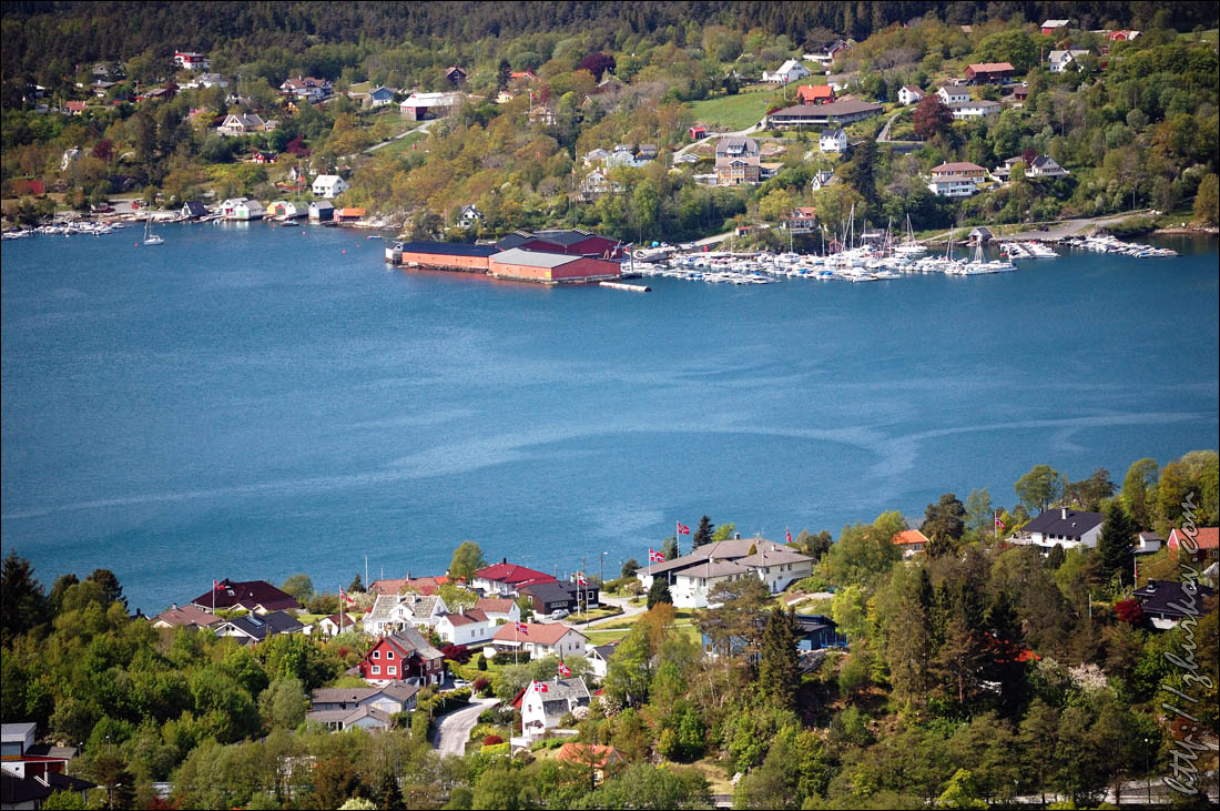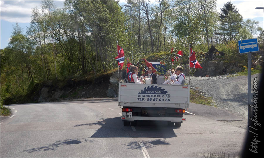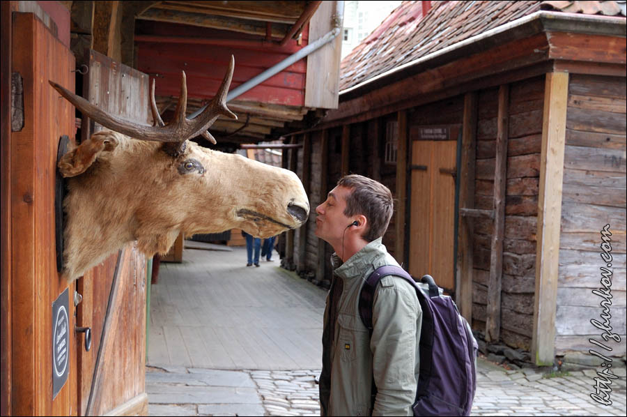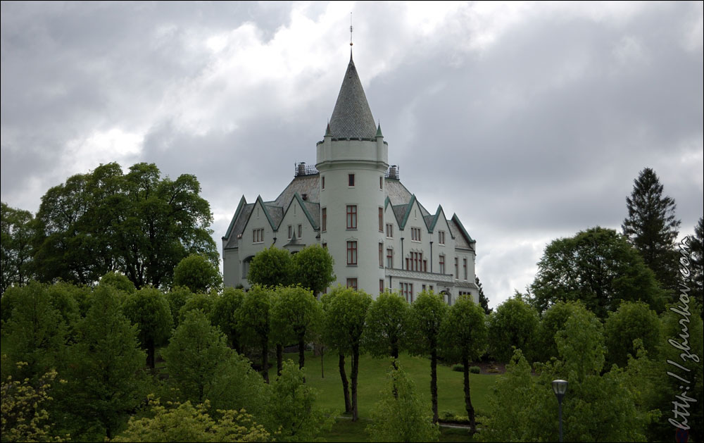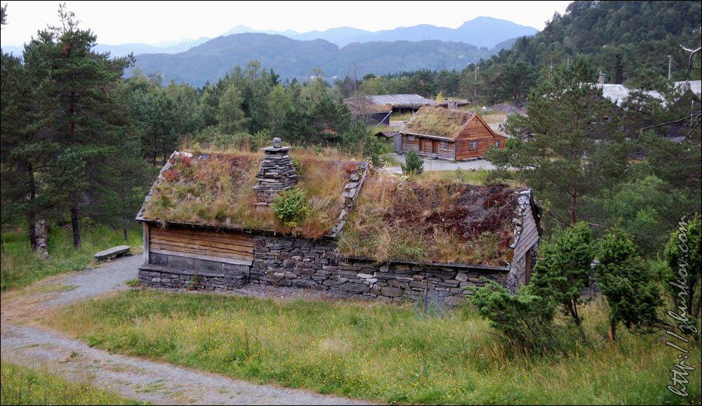 Один такой костюм стоит бешеных денег (иной раз более 100 тыс. крон), обычно передается по наследству. Мы в этот день решили поездить по окрестностям на машине и увидели, как в кузове нарядные норвежцы едут отмечать праздник куда-то с музыкальными инструментами, грузовик украшен распустившимися березовыми ветками. Вечером в центре города были массовые гуляния, везде флаги, вообще, такой патриотизм редко где встретишь. Как нам говорили те, кто живут там, именно здесь в Бергене этот день празднуется наиболее ярко. Будучи ярыми патриотами своей страны норвежцы лелеят свою историю и культуру. Неподалеку от места, где мы жили, был расположен музей Hordamuseet, представляющий экспозицию о жизни вокруг Бергена в прежние времена. На его территории как-то проводился День викинга (Vikingsdag), каждый мог поучаствовать в этом, понаблюдать за представлениями в костюмах и посетить непосредственно саму экспозицию. Чуть поодаль на горе под открытым небом расположен музей Vestlandske setermuseum, на который мы случайно вышли, забравшись на гору в поисках красивых видов и голубики. В музее можно погулять и посмотреть различные здания XVII - XIX вв. в натуральную величину. Там мы оставили свои автографы в книге гостей:) В Бергене есть музей Э. Грига, который здесь родился, и, конечно, другие музеи, но там я так и не побывал. Зато погуляли по одной из резиденций норвежского короля Харальда V, которая расположена по дороге между Бергеном и местечком Родал - Гамлехауген (Gamlehaugen). Доступ туда свободный, никаких секьюрити, никакой охраны, на лужайках/пляжах спокойно отдыхают люди.