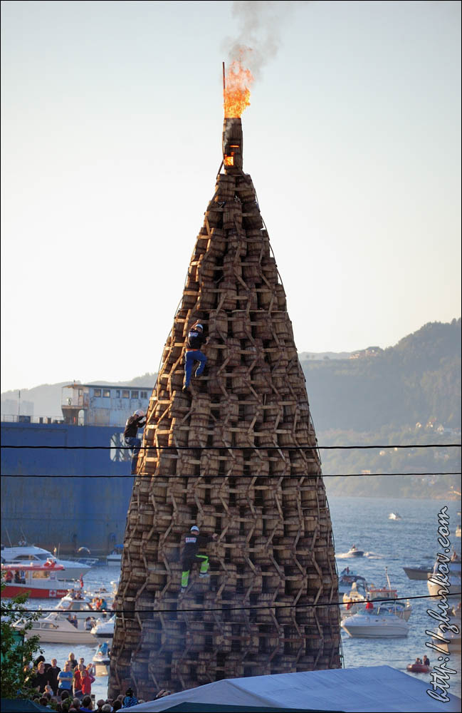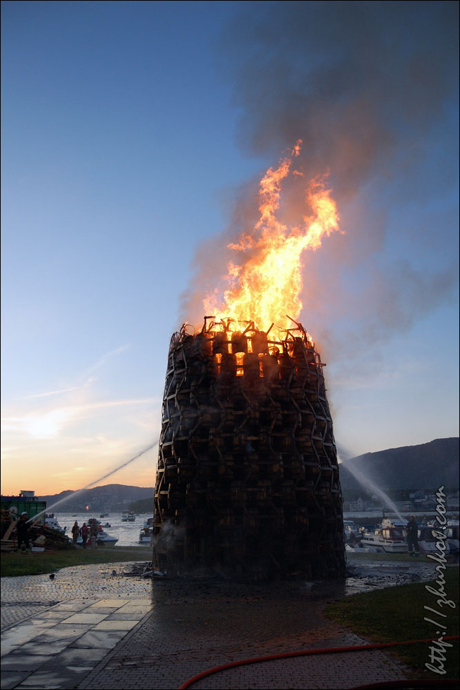 Короля, конечно, в эти дни там не было, но все равно сам факт наглядно говорит об открытости монарха перед своими поданными.В день летнего солнцестояния в Бергене праздновали Jonsok (Ночь святого Ханса) - дошедший из языческих времен праздник. У нас он называется Иван Купала и празднуется согласно Юлианскому календарю позже. В 2009 году жгли большой костер из деревянных бочек, тут же на сцене играли музыку, народ отдыхал, но через костер, естественно, никто не прыгал:) Он горел около 3х часов, его постоянно поливали водой из брандспойтов, чтобы горение было равномерным. Доступ на территорию был платный, но многие могли со стороны моря наблюдать это действо на лодках. Вообще, лодка - это то, что должно быть по умолчанию у каждого норвежца. Как нам рассказывал пригласивший норвежский профессор, доступ к морю у них для всех открыт, даже если в этом месте чей-то дом/сад, он не может тебе препятствовать пройти через его территорию к морю, вроде бы, такие законы. Как-то коллега с норвежской стороны Кнут пригласил нас на морскую рыбалку на своей лодке. Впечатлений было море, тем более первый раз в жизни ловил так рыбу и поймал на удочку здоровенную атлантическую треску:-) Длина выловленной рыбы составила 77 см, вес около 3,7 кг:-) Еле вытащили:))