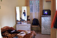 Тем более, что сезон-2006 заканчивался, и в Алуште можно было без проблем снять жилье в разы дешевле, а его я оплачивал из своего кармана, ведь выигранным грантом РФФИ все расходы при путешествии самолетом в любом случае не покрыть, да и, чего греха таить, я не люблю обман, не люблю платить за услуги, стоимость которых явно не соответствует предлагаемому. Позже я узнал, что аналогичная ситуация с качеством жилья и в других пансионатах, - пообщался с постояльцами соседнего санатория "Алушта", приехавшими из России, они тоже посетовали на то, что "это совсем не стоит тех денег", и они, мол, думали что уж в "Дубне"-то наверняка лучше, "у Дубны вон и вывеска красивее":)) Не знаю, как принято у украинцев, но по-моему даже в сибирском провинциальном Томске уже не осталось такого рода гостиниц с отваливающимися дверцами шкафов образца 80х, а Алушта все же курорт, в котором за лето 2006 года отдохнуло около полумиллиона человек, и как не стыдно приглашать в такое совковое безобразие отдыхающих... А еще... а еще в этом пансионате в номерах было радио, да не FM, как мог бы кто-нибудь подумать, а такое, с одной программой, проводное, по которому лет 20 назад в 6 утра и в полночь играл гимн СССР. Выступил на конференции с докладом, оказалось, в моей секции их было всего два - больше никто не приехал. Фотоаппарат с собой не взял, попросил прислать фотку человека, что сделал общую фотографию участников двух секций, но он, увы, ее почему-то не прислал. Погода в этот день была хорошей, и после заседания секций я пошел прогуляться по дороге вдоль набережной в сторону Гурзуфа. После одного из пансионатов асфальтированную дорогу преградил деревянный забор с надписью "Обвал! Проход запрещен!", при этом ворота были открыты, и видно было, что люди там иногда ходят. Пройдя немного дальше я наткнулся на какой-то заброшенный сад, в котором росла слива, инжир, грецкий орех и, наверное, что-то еще, я такое видел впервые, поэтому, конечно же, поел инжир прямо с дерева и набрал немного с собой, вообще, странным было то, что инжир стоит в Алуште дорого (до 20 гривен/кг), а тут он рос в свободном доступе. А на следующий день я съехал из "Дубны" сначала в какое-то совсем убогое жилье на ул. Глазкрицкого за 4 доллара в сутки недалеко от пансионата, а потом в другое со всеми удобствами в Алуште по адресу ул. Горького, 21, где за $10 (50 гривен) в моем распоряжении был и горячий душ в любое время, и туалет, и отдельная комната с двуспальной кроватью, холодильником и спутниковым ТВ с более чем полусотней каналов (в "Дубне" почему-то их было всего около десятка и смотреть там кроме Евроньюс было нечего, а моего соседа по комнате новости раздражали:)), а также кухня, посуда, не говоря уже о красивом виде вокруг - синел виноград, росла хурма и прочие вкусности, а в небольшом пруду плавали рыбки. Плюс до центра и транспорта было несколько минут ходьбы, ключ сдавать/забирать у дежурной было не надо, как не надо было и ориентироваться на расписание обеда.