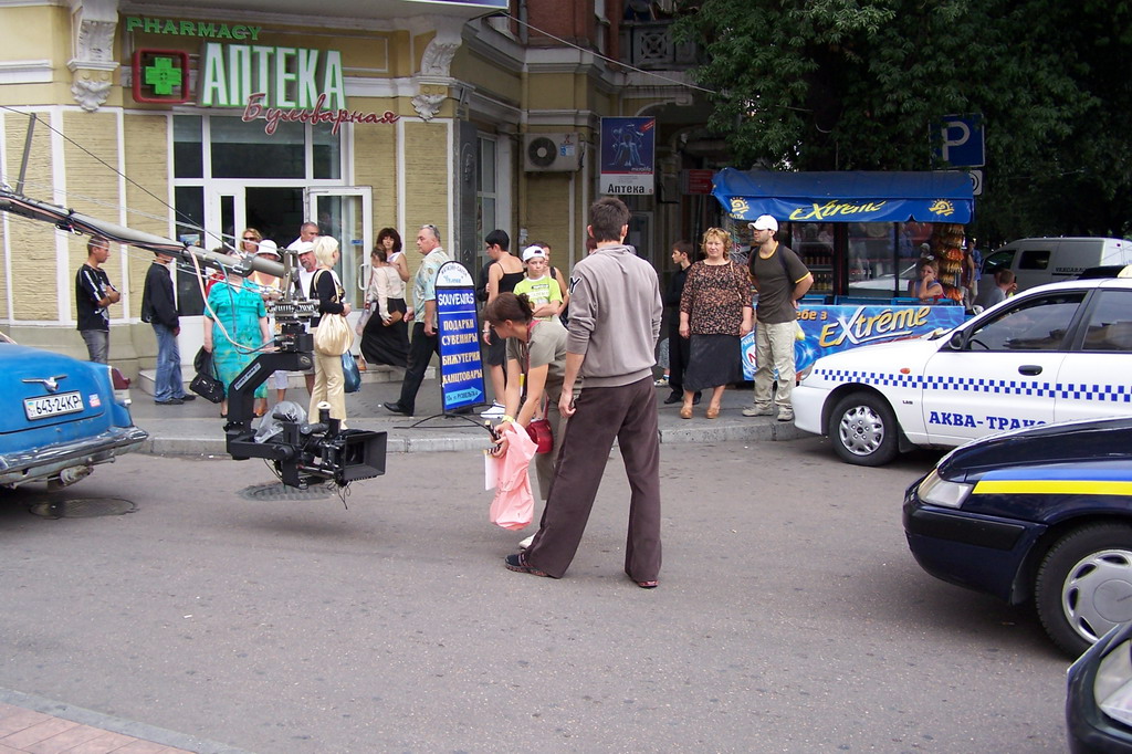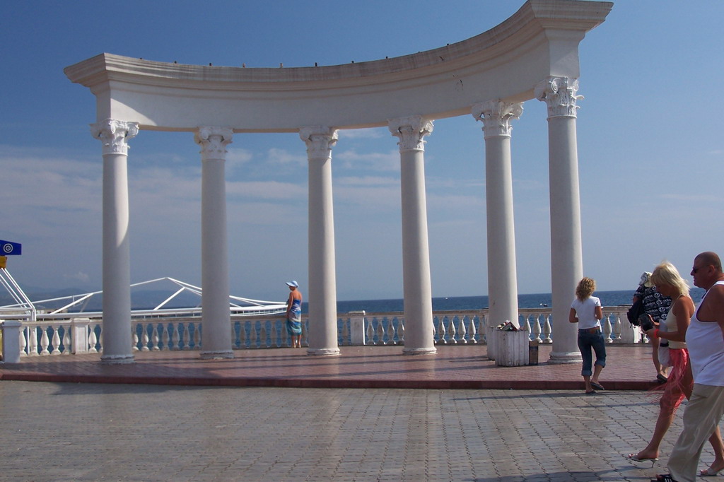 Съемочная бригада неустанно повторяла, чтобы толпы собравшихся зевак в камеру не смотрели и, как только звучал сигнал начала съемки - "Мотор!", народ с чувством глубокой ответственности начинал играть роль обывателя и отворачиваться от камеры. Быть может, и я там где-нибудь в кадр попал:) Недалеко от Ялты расположен Ливадийский дворец, до которого по набережной можно дойти пешком, поднявшись в конце пути ко дворцу на специальных лифтах.