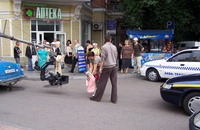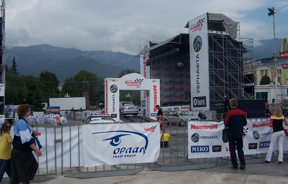 Кстати, выражение "бархатный сезон" родилось в конце 19 века здесь в Крыму. В те времена в конце лета и начале осени побережье покидали служащие (инженеры, учителя, чиновники и т.п.), а курорты наполнялись лицами свободных профессий (художники, литераторы). Первых по одежде называли "ситцевой публикой", а вторых - "бархатной". Надпись "АЛУШТА * КУРОРТ" на городской арке, что на набережной недалеко от центрального городского пляжа, куда-то пропала. По вечерам набережная усыпана отдыхающими, но делать здесь, на мой взгляд, абсолютно нечего. Загорать и купаться я ходил на дикие пляжи, где отдыхал и в прошлый раз. В этот раз на них народу было гораздо больше, поскольку вдоль берега было очень много туристов, живших в палатках, но тут хоть торгаши не ходили толпами - это не могло не радовать. Там же на берегу поймал чайку, у нее было сломано крыло, но, несмотря на это, она сильно сопротивлялась, пытаясь ударить клювом. Побоявшись птичьего гриппа, о котором говорил Жирик в призыве расстреливать птиц, прилетающих из Турции, я ее отпустил и быстро помыл руки. Она после этого еще долго жила там, люди ее подкармливали, но помочь ей, похоже, было уже нечем. В один из дней решил съездить в Ялту, посмотреть, что за город, побывать в "Ласточкином гнезде", а по дороге, может быть, все-таки заехать в "Артек". Но ни в "Ласточкино гнездо", ни в "Артек" я не попал, просто не успел, зато познакомился с городом. Ялта по сравнению с Алуштой оказалась более ухоженной и гораздо цивилизованней, на улицах было относительно чисто, цены на продукты были выше и курс валют к гривне был менее выгоден, чем в Алуште. Стал свидетелем финиша проходившего там международного этапа Кубка Европы Nemiroff Yalta Rally. С набережной я-таки увидел основную достопримечательность Ялты - "Ласточкино гнездо", воспользовавшись зумом фотоаппарата. Тут же на набережной расположен ялтинский порт, в котором пришвартовано было множество различных дорогих яхт, здесь же расположен маяк. Гуляя по городу, наткнулся на съемки какого-то фильма, съемка велась "в движении" со старой "Волги", на которой укреплена была камера. В эпизоде молодой человек должен был убегать от милиции, гнавшейся за ним на нескольких машинах, дублей делали несколько, и парень довольно сильно запыхался бегать туда-сюда.