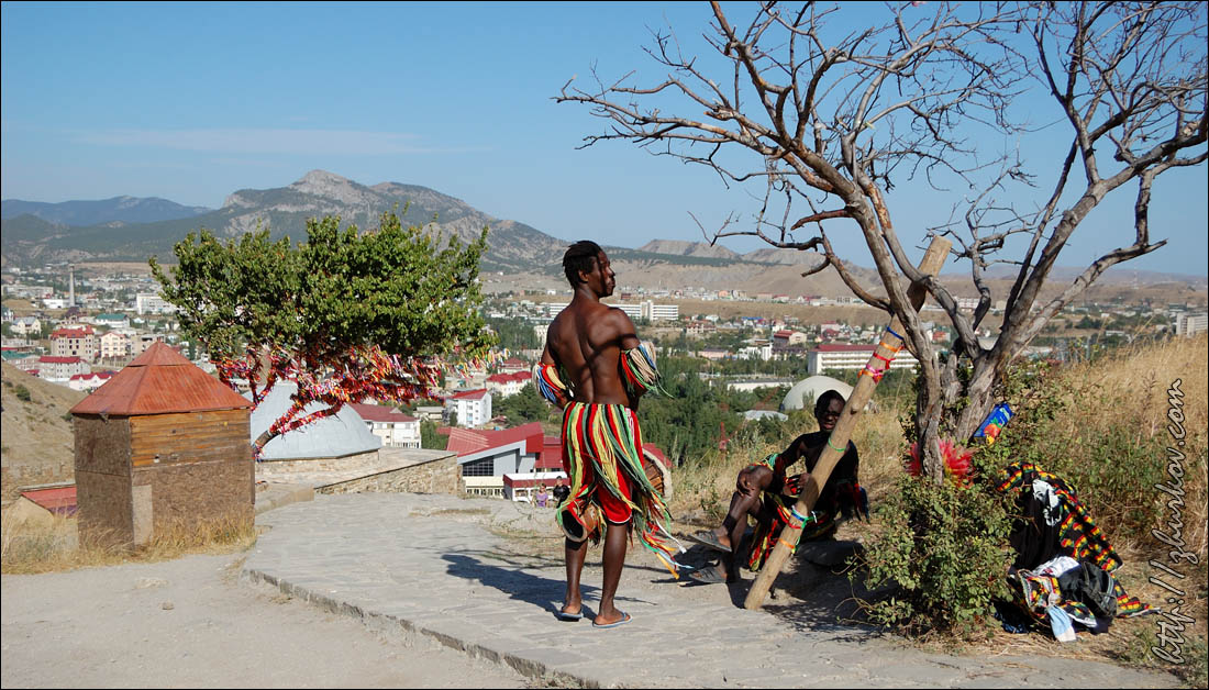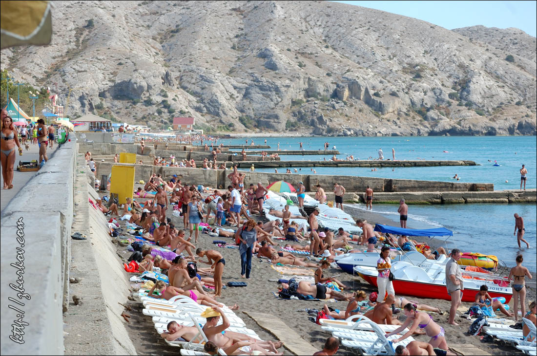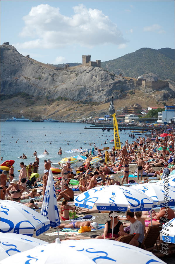 Крым - 2010 Спустя два года с последней поездки, решил смотаться отдохнуть в Крым, хотя в прошлый раз думал, что сюда если и приеду, то это будет уже не так скоро. Просто вышло, что авиабилеты получились "мегадешевыми" (по томским меркам, конечно же, всего 11,4 тыс. руб. за перелет туда и обратно через Москву), при этом ничего внятного из других мест отдыха не нашлось. В этот раз отправной точкой отдыха стал Судак, в котором я был впервые. Дорога до него из Симферополя долгая и дорогая, в сравнению с привычной Алуштой. Находится городок на самом востоке ЮБК. По приезде меня приятно удивили очень низкие цены на жилье, и не обрадовал холод в вечернее время, что даже пришлось одевать куртку. Остановился на пару дней, сняв комнату в частном секторе на Партизанской, 11/2, у очень приветливой хозяйки Таисии, которую встретил случайно вечером, подыскивая жилье, т.к. ввиду непредвиденных обстоятельств (SIM-карта оператора TELE2 никак не хотела регистрироваться в местных сетях - оказывается, перед вводом PIN-кода надо было ввести цифру 1) запланированное размещение и встреча с уже отдыхавшим там коллегой сорвались. Пляжи в Судаке песчаные и на многие из них вход свободный, в отличие от Алушты, в которой на весь город число коротеньких каменистых бесплатных пляжей можно сосчитать на пальцах одной руки.Однако я не любитель отдыхать в таком месиве, когда вокруг толпы народа, все шумят, каждые 5 минут по пляжу проползают торговцы со своими унылыми скороговорками "мидии, рапаны, сыр копченый... вареная кукуруза, сладкая медовая пахлава... холодное пиво", которые уже к концу первого дня можно выучить наизусть, - это все сильно утомляет и не входит в мое понимание нормального отдыха. Море было теплым, потому, конечно же, покупался, а на следующий день сходили посмотреть на основную достопримечательность Судака - Генуэзскую крепость. Вход стоил 30 гривен, крепость расположена на горе и представляет собой довольно хорошо сохранившиеся/реконструированные стены, башни, церковь (в ней расположен музей), замок консула и остатки казарм.Возведение крепости относят к XIV-XV вв. Как сказал экскурсовод проходившей рядом экскурсии, якобы в настоящее время исследовано около 5% от всего сооружения и такими темпами, исследование крепости для получения полной картины затянется еще на тысячу лет, - думаю, преувеличивает. По дороге к Консульскому замку стояли какие-то негры, которые постоянно били в барабаны и кричали "Акуна-Матата" и "Don't worry, be happy", приглашая с ними сфотографироваться. Наверное, это для тех, кто никогда не видел негров и непременно хочет этой "экзотики" себе в фотоальбом.