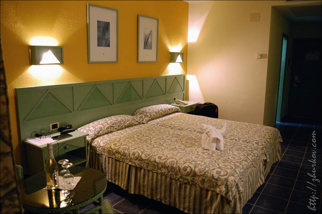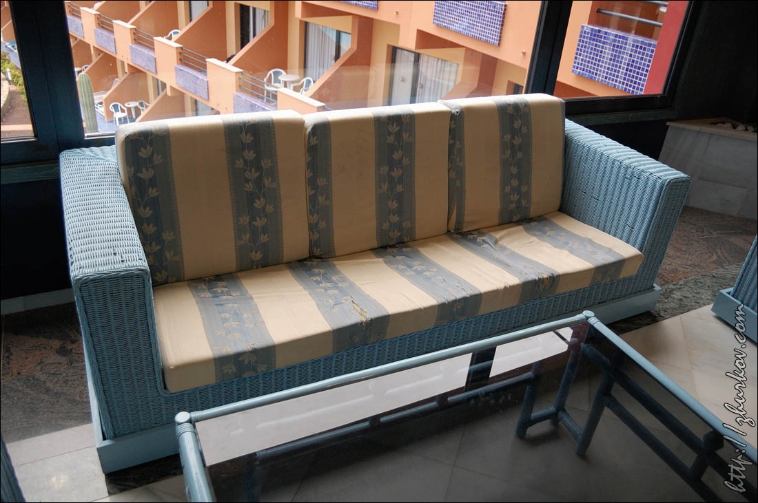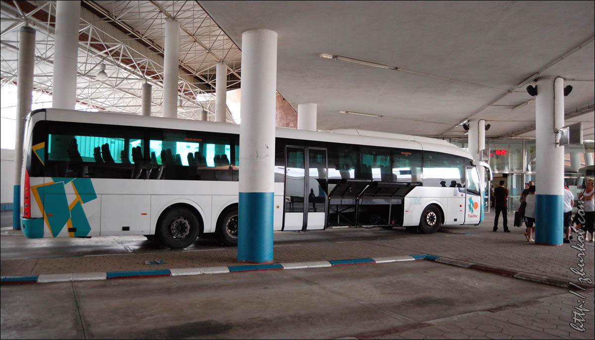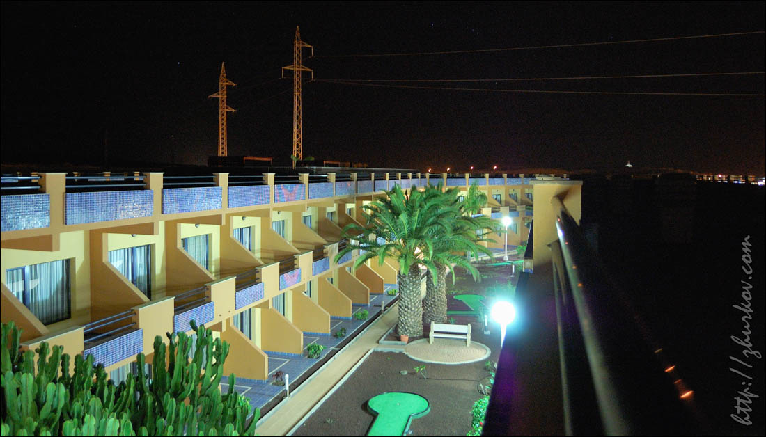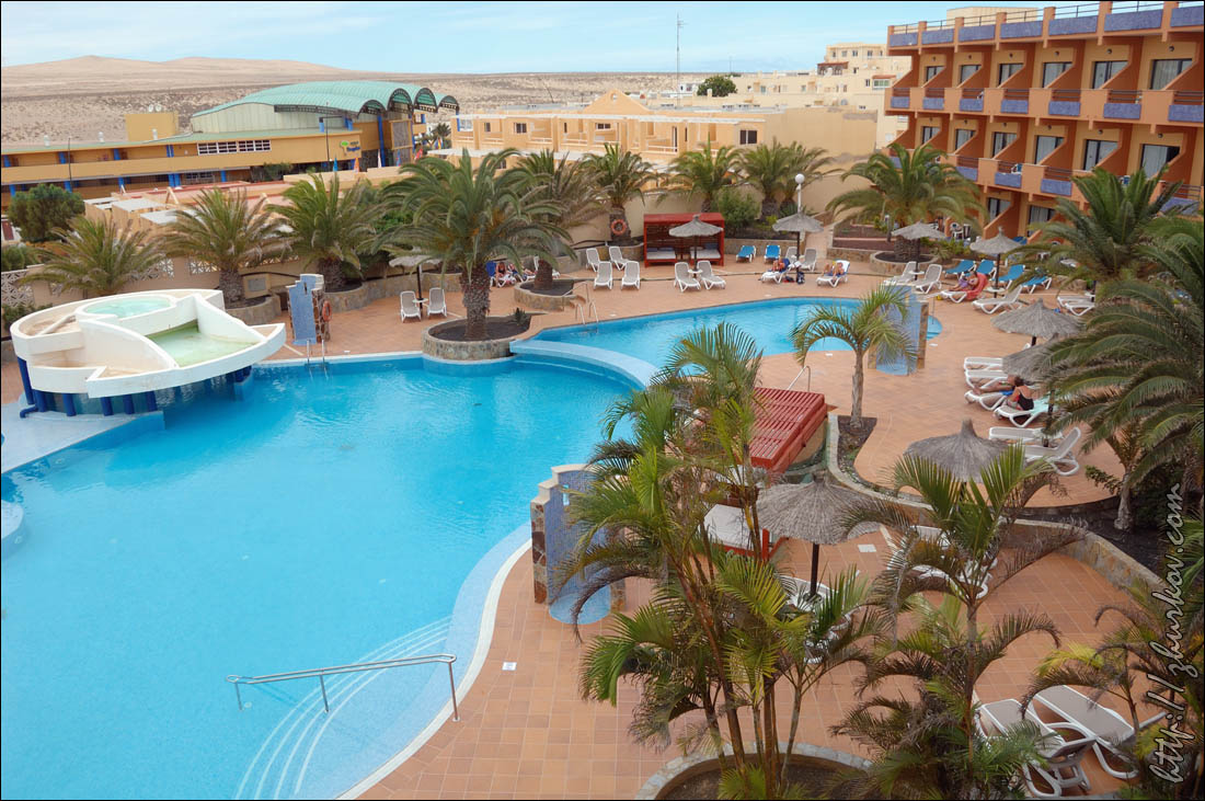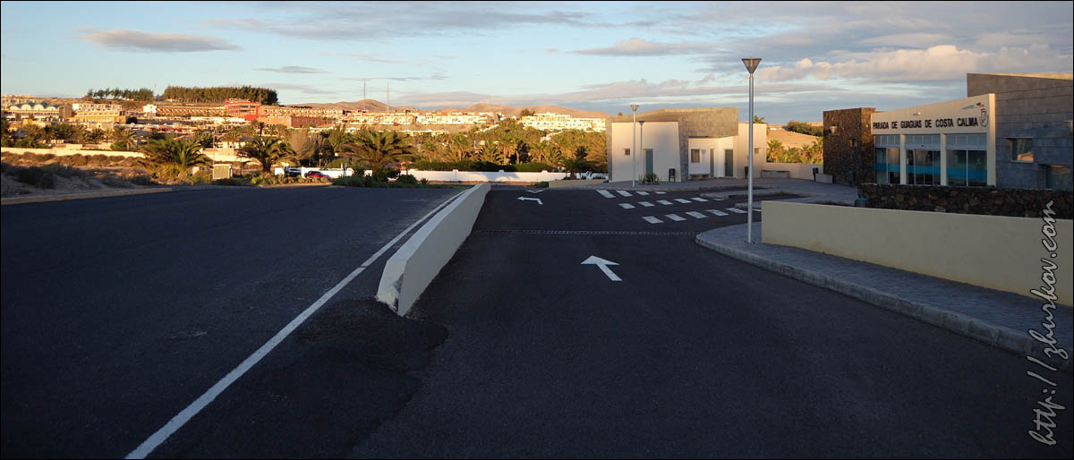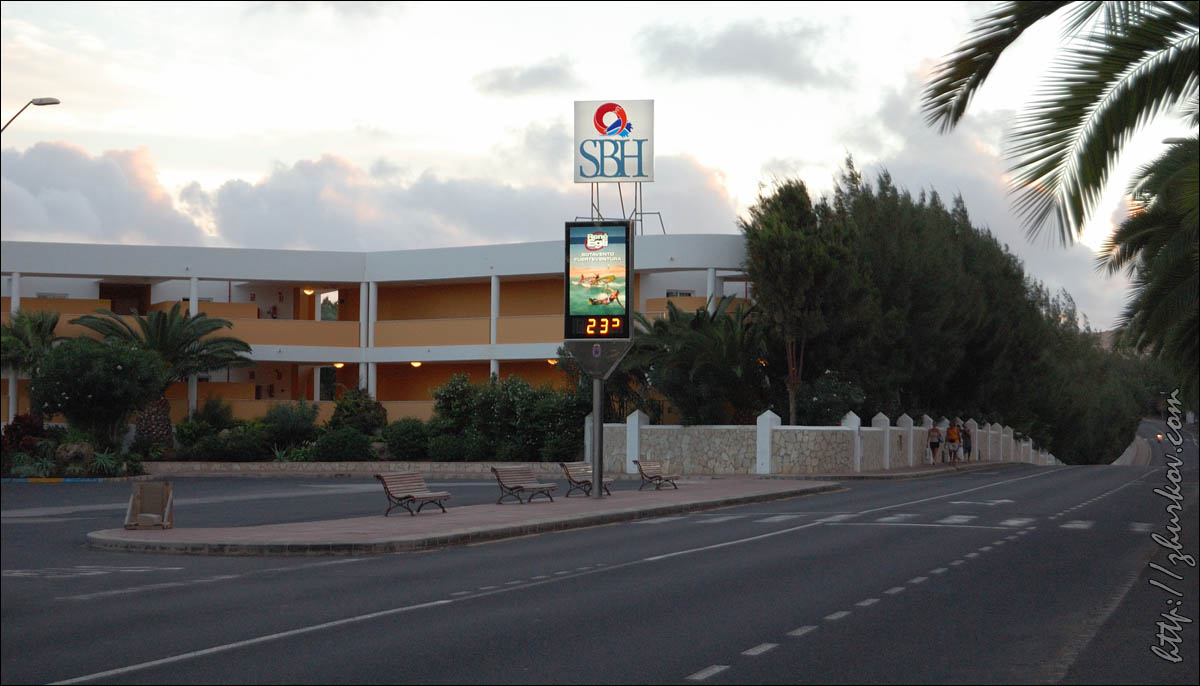 Смысла ждать не было, проще было доехать на автобусе №3 до столицы острова - Puerte del Rosario (проезд 1.3 €), чтобы там сесть на автобус №1, следующий через Коста Кальму до Морро Хабле. Заодно на автовокзале в Пуэрто дель Росарио в автомате купил припейд-карту Tarjeta Dinero (Bono Bus), чтобы платить за автобус на 30% меньше, в аэропорту про нее до этого спрашивал - в отличие от аэропорта Тенерифе такую карту там нигде не продают. Карта номиналом 12€, в автобусе ее надо опускать белой стороной вверх в специальный компостер, который на ней напечатает время покупки, сколько с вас за поездку взяли денег, и сколько осталось, если средств недостаточно, то с карты списывается остаток, а наличными доплачиваете водителю по сниженной цене. Перевозками на острове занимается компания Tiadhe, автобусы большие и комфортабельные, но ходят весьма редко, где-то раз в полчаса. Нигде не мог найти распечатку их расписания, которую на других островах можно было взять бесплатно на любой автостанции, здесь же расписание можно посмотреть разве что в Инете. Кроме того, на остановках расписание автобусов висит далеко не везде.Путь до Коста Кальмы на автобусе занял полтора часа, в отличие от №10 по дороге автобус №1 заезжает во многие населенные пункты и проезд стоит на несколько центов дороже. Неразбериха в транспорте есть и в плане остановок - в Коста Кальме автобусы со стороны Пуэрто дель Росарио приезжают в разное время на разные остановки:) Иногда приезжают на остановку, которая находится на дороге FV-2, проходящую непосредственно через населенный пункт, реже - на недавно отстроенную автостанцию, расположенную около стадиона вдалеке от отелей и центра. Мой автобус приехал как раз на нее, меня удивило, что на ней ровным счетом никого нет, т.е. практически в пустыне стоит новенькая станция с автоматическими дверьми, залом ожидания и санузлом, а внутри и вокруг - ни души. Я было порадовался, увидев название улицы Punta Persebre рядом с остановкой, на ней должен был располагаться отель, однако, чтобы попасть к отелю, согласно имевшейся у меня распечатки Google Maps улица должна была идти выше, на деле же там оказался пустырь с раскопками:) В этом месте улица только строится, а когда будет достроена - неизвестно:) Путь же через низ до отеля значительно дольше из-за того, что надо обходить разные отели/бунгало. Выбранный отель Best Age Fuerteventura**** (managed by Cordial) я в конце концов нашел, хотя его увидел еще на остановке, т.к. он находится на горе. При заселении оказалось, что брони номера на меня от HRS по каким-то причинам у них нет, т.е. меня не ждали:) Я показал свою распечатку и, т.к. мест в отеле было достаточно, меня без проблем поселили. При поселении дарят бутылку игристого вина, под залог выдается пляжное полотенце.Так дешево на Канарах я еще не жил (30 €/сутки с завтраком), при этом в отеле отсутствуют дети, есть SPA с бесплатными саунами, джакузи и гидромассажем. Также имеется небольшая фитнес-комната с парой дорожек, велотренажерами и блоками, свободных весов нет (3 блина и пара полуторакилограммовых гантелек не в счет), потому полноценно заниматься фитнесом там нельзя. Почти весь персонал на ресепшн немецкоговорящий, и в плане общения проблем никаких не было. В номере холодильник и большой LCD-телевизор с множеством немецких и испанских телеканалов, а также пропагандистским Russia Today. Сначала поселили в комнату, в которо