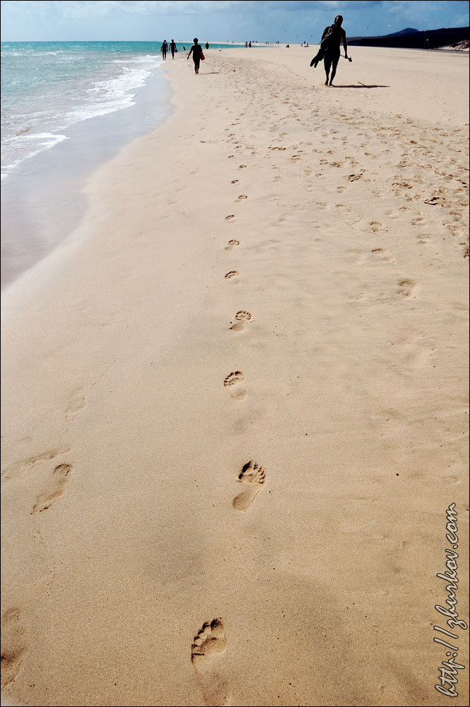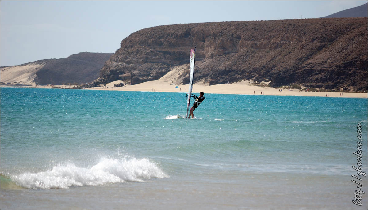 Красивые места, ничего не скажешь - только океан, солнце и песок, ну, и, увы, народ тут есть и его не мало, начиная от серфингистов и заканчивая пожилыми немецкми натуристами. Не верьте путеводителям, которые говорят, что на огромном Сотавенто вы не встретите людей, - вы их на Фуэртевентуре в немалом количестве если и увидите, то именно здесь:) В плане загара без одежды Фуэртевентура, пожалуй, один из самых привлекательных островов, во всяком случае, мне показалось, что тут подобного на порядок больше, чем на Гран Канарии.