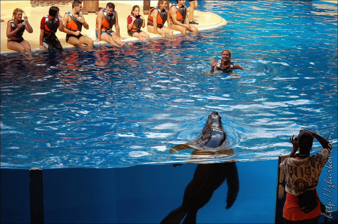 Единственное отличие - тут можно заплатить, чтобы самостоятельно поучаствовать в шоу на сцене - поплавать с морским львом или поездить на верблюдах в Кэмел Сафари. Что мне в этом парке действительно понравилось, так это большой сад кактусов по пути на шоу с хищными птицами, некоторые из кактусов просто огромные - с двух-трехэтажный дом. Так же, как на других Канарских островах, вода тут очень дорогое удовольствие, получаемое из установок по обессоливанию. Использованную из отелей воду после очистки пускают на полив пальм, которые тут растут только там, где есть люди, их посадившие и поливающие.