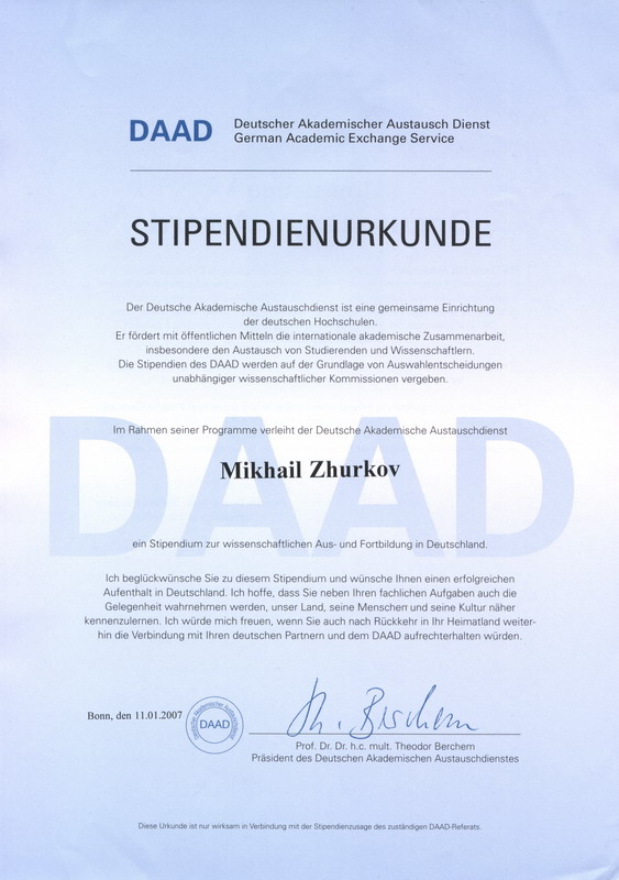 Новости18.11.2007 - Фотоотчет о поездке в Крым На сайт добавил страницу о последней поездке на черноморское побережье - Крым-2007. В этом году я сильно продлил себе теплое время года, сначала поездкой к морю, а затем поездкой в Германию - в Дармштадте первый снег пошел только 14 ноября, и до сих пор по сибирским меркам тут тепло. Вроде бы, наконец, все формальности уладил, живу здесь, на работу езжу на велосипеде, тут это вполне удобно и быстро, поскольку городок маленький:-) В начале ноября ездил на семинар DAAD в Бонн, там помимо всего прочего был организован торжественный прием для стипендиатов в консульстве РФ, оттуда же, сорганизовавшись с другими ДААДшниками, съездили в Кельн, там посмотрели восхитительный Кельнский собор и посетили ряд музеев Кельна в "музейную ночь". Все было очень здорово, надо отдать должное DAAD за отличную организацию семинара. 10.10.2007 - Телефон в Германии Подключился в Германии к сотовой связи через Ortel Mobile, теперь до апреля следующего года я достижим по телефону: +49 177 133 70 50. До этого германский сотовый оператор О2 отказал в заключении договора без объяснения причин, что само по себе символично:) К сожалению, не знаю местных законов, касательно подобных вещей. Хостинг глючит, потому данный сайт уже несколько дней отображается криво, гостевая книга по-прежнему работает, там же можно найти и функционирующее меню сайта для перехода по разделам и страницам. При доступе к сайту из-за пределов России некоторые полноразмерные фотографии могут не открываться (ошибка 403 - для файлов более 100 кБ). 1.10.2007 - Уезжаю в Германию Вчера встречались университетской группой в боулинге по случаю ежеосеннего приезда Юли из Германии, которая по старой традиции нас всех собирает:) А я уже завтра уезжаю туда же, в Германию по гранту DAAD и Рособразования на научную стажировку в TU Darmstadt до конца марта следующего года. 12.09.2007 - Уезжаю в отпуск Послезавтра, т.е. в пятницу улетаю до конца сентября на отдых в Крым, в связи с этим номер мобильного телефона на это время будет другой: +7 911 915 81 07 (МТС-СПб). 30.08.2007 - Страница про Томск Полностью обновил страницу про город Томск. Это одна из наиболее часто посещаемых страниц на этом сайте, хотя до этого она была совершенно неразработанной. Добавил много фотографий и комментарии к ним. Прикрутил иконку к сайту, вообще, дизайна, конечно, тут нет, но если кто-нибудь посоветует, как сделать так, чтобы он появился, прислушаюсь с удовольствием:-) 6.04.2007 - О поездке в Прагу Наконец-таки закончил страницу с фотографиями про поездку в Прагу. Взялся я за это описание ну ооочень давно, но все почему-то рассказ никак не писался, а тут появилось немного свободного времени, и решился доделать ранее не работавшую страницу:-) В Томске резко наступила весна со всеми ее оттаявшими "прелестями" на улицах, а я позавчера закрыл лыжный сезон - в этом году на 10 дней раньше, чем в прошлом:-) |