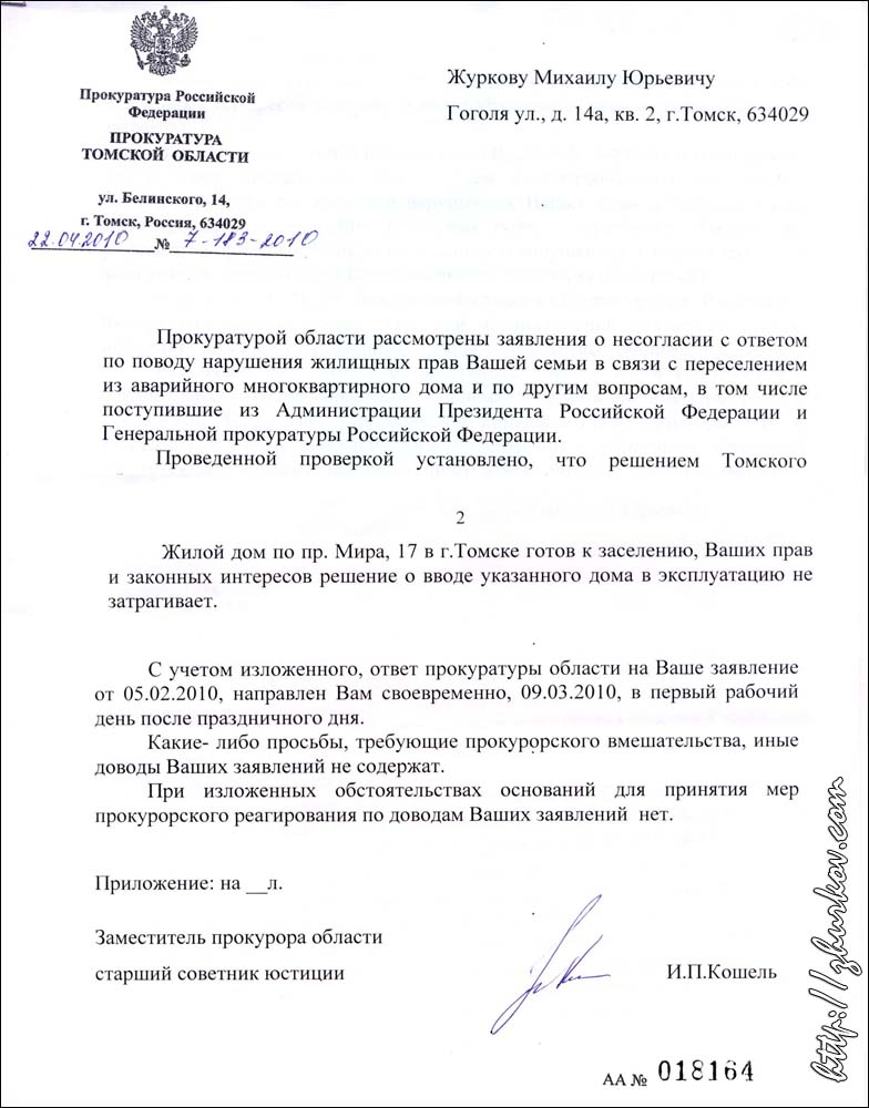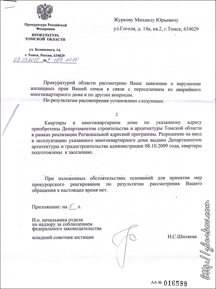 Новости11.04.2011 - Не прошло и года... Год назад я писал в Облпрокуратуру помимо прочего и о том, что дом, куда меня собирались запихнуть в коммуналку, по пр. Мира, 17/1 не сдан в эксплуатацию, в то время как согласно госзаказа срок поставки квартиры значился 06.11.2009, т.е. речь шла о нарушении ч. 7 ст. 20 №185-ФЗ. На это мне областной прокурор ответил, что якобы квартиры подготовлены к заселению. После этого я направил Президенту и в Генпрокуратуру письмо с указанием того, что с реальностью мало что сходится, дом на самом деле не готов к заселению, т.к. там много чего не сделано, и каким образом получено разрешение на ввод в эксплуатацию недоделанного дома не понятно. Письмо опять переслали в Облпрокуратуру, которая мне ответила опять отпиской, мол уже "ваших прав это не затрагивает". Летом начали-таки дом заселять, но помимо прочих недоделок, лифты там так и не обнаружились, о чем мной и жильцами было сказано в репортаже о расселении в новостях "Вести-Томск" в декабре ушедшего года. И вот наконец-то недавно после проверки Кировской прокуратуры все же привлекли чиновника к ответственности. Все бы ничего, только, несколько но: ввиду того, что областная прокуратура не отреагировала должным образом вовремя, людей стали заселять в заведомо бракованный дом, априори обрекая их на неудобства, и ответственности за несвоевременное исполнение госконтракта вообще никто не понес. Возникает вопрос, за что областные прокуроры получают зарплату-то, за то, что Зайкова таскают по психушкам что ли? Про городскую администрацию уж и не говорю - с ней мне и так давно все ясно. 9.04.2011 - Опять на телеэкранах:) Пока кто-то "лечится" от "синяков" и, ежедневно посещая мой сайт, театрально симулирует "сотрясение мозга", полученное на улицах плохо убираемого городской администрацией грязного весеннего Томска, к нам в институт на этой неделе приходили журналисты ГТРК "Томск" и делали репортаж про инновационную разработку, не побоюсь сказать, мирового уровня. Дело в том, что наша лаборатория принимала участие в Петербургской технической ярмарке с разработкой "Высоковольтная импульсная буровая установка" и получила за нее диплом I степени с золотой медалью. Снимали много и долго (больше часа), а все в итоге уместилось в 2 минуты. В кадрах, что вышли в сегодняшней новостной программе, можно увидеть в т.ч. и меня:)) Видеосюжета на сайте телекомпании почему-то нет, но запись пока можно скачать здесь. 2.04.2011 - Нынче была не лыжная зима Сейчас за окном +4 °C, пасмурно и идет дождь, а это значит, что вчера я таки закрыл этот лыжный сезон, последний раз в нем покатавшись в окрестностях стадиона "Буревестник". Сезон был совсем короткий, т.к. зима была холодной до начала марта, а март был очень теплый, потому все быстро растаяло. Даже как обычно в конце сезона на реке в этом году ни разу не прокатился, т.к. там везде образовались лужи, да и лед в два-три раза тоньше прошлогоднего. За сезон проехал на лыжах всего-навсего 87.7 км. 31.03.2011 - По стопам Зайкова Сегодня побывал по старому месту своего проживания, хотел посмотреть и зафиксировать на фото, как администрация Советского района силой выселяет людей из дома по адресу ул. Гоголя, 14/3, которые судились до последнего и до сих пор просто героически судятся. Однако сотрудницы администрации почему-то так прятались, боясь фотокамеры, что создалось впечатление, что они со