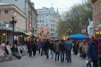 Москва Москва - столица Российской Федерации, субъект федерации, первое упоминание о Москве относится к 1147 году, соответственно, с этого года и идет отсчет возраста города. Население ок. 10,5 млн. чел. (без учета нелегалов, туристов и проезжающих, с ними - ок. 20 млн. в день), что позволяет говорить о Москве, как о самом населенном городе Европы. Москва - финансовый, культурный, транспортный, политический и т.д. центр страны. В Москве я был многократно, большей частью проездом, ввиду того, что в настоящее время это главный транспортный узел, так уж сложилось исторически, что почти все поезда и самолеты идут через Москву. Первый раз был там в далеком 1988 году, возвращаясь с отдыха в г. Гагра (Грузия), помню, стояли в очереди за дефицитными бананами и шоколадными конфетами. В советское время в эпоху повального дефицита в Москве отоваривались многие и всякими способами везли товары домой.В этот раз в Москве я был на семинаре, что устраивала ДААД для стипендиатов программы Михаил Ломоносов. В Москву летели на самолете авиакомпании KrasAir, в копилку самолетов, на которых я летал, в этот раз добавился Боинг 737-300. Этой авиакомпанией летел я впервые, но в общем мне понравилось, только некоторые пассажирские кресла были полуразвалившиеся, а на каждом из них прилеплена наклейка с орфографической ошибкой. Молоденькая стюардесса, заметив в моих руках фотоаппарат, с улыбочкой произнесла: "Фотать нельзя!" - прям так и сказала:) Но в целом обслуживание со стороны персонала мне понравилось, показалось лучше, чем на Сибири, которой я все время летал до этого, взлет и посадка были мягче, полет чуть дольше, ну, и вышло дешевле, несмотря на то, что Visa Electron почему-то для оплаты не принимают. В Москву самолеты из Томска прилетают в международный аэропорт Домодедово, который за последние годы очень сильно изменился в лучшую сторону, в настоящее время он является самым крупным аэропортом страны, пассажиропоток в 2007 году составил 18,7 млн. чел. От аэропорта до города можно добираться электричкой или автобусом (дешевле), такси и маршрутки как вид транспорта я уже давно даже не рассматриваю, поскольку встретиться с хамством и обманом в этом случае вероятность существенно выше, о чем и сказано на многих информационных указателях еще в аэропорту. Таксисты у нас везде одинаковы, да и не только у нас. Автобусы едут до станции метро Домодедовская, выйдя на которой, мы будто очутились в 90х годах - около остановки все было заставлено металлическими ларьками с одним и тем же набором товаров. Мы даже немного загордились - в Томске такого уже не встретишь:) И еще бросилось в глаза - вокруг ходило непривычно много лиц кавказской национальности, забегая вперед, скажу, что в центре Москвы их в таком количестве как-то не встречалось. Тут же на входе в станцию эти лица методично проверялись сотрудниками милиции. Поселились мы в гостинице "Варшава", которая расположена почти в центре столицы рядом со станцией кольцевой линии метро "Октябрьская". Номера в этой гостинице, которая снаружи выглядит как-то серовато, на мой взгляд, были для заявленного класса 3х звезд вполне современные и комфортные. Завтрак был в красивом ресторане "Александровский зал" на 8 этаже гостиницы. Но работники гостиницы могли бы быть и поприветливее, улыбок на лицах работников я практически не видел, увы. В первый же день начался