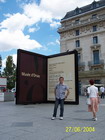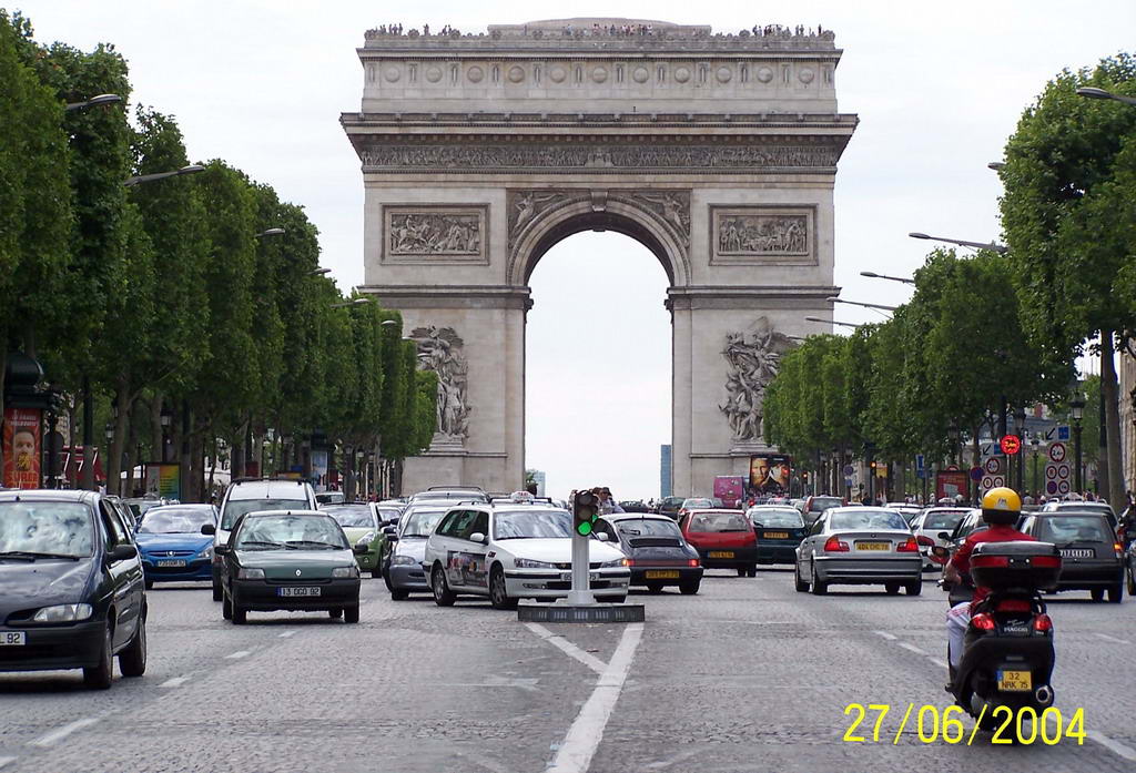 На верхнем уровне есть выход на открытую террасу, с которой открывается вид на Сену. Также на том уровне расположен зал Ван Гога, Мане, Гогена и прочих известных художников. А на первом этаже расположен зал Гюстава Курбе, который в 1866 г. нарисовал такую вот очень реалистичную картину, недаром он является ведущим представителем реализма в живописи. Кстати, и называется она ни много, ни мало - "Происхождение жизни". При жизни художника сие скандальное творение не выставлялось, да и после, в общем-то, тоже, только, начиная с 1995 года, с картиной могут познакомиться все желающие. Елисейские поля - это главная улица Парижа, триумфальный путь, место прогулок и, одновременно, престижная витрина Парижа - по обе стороны авеню расположены роскошные магазины, рестораны, банки, представительства авиакомпаний, кинотеатры и так далее. Кроме того, на этой улице расположена резиденция президента Франции - Елисейский дворец. В кафе сети "Планета Голливуд" на Елисейских полях я прикупил себе сувенир в качестве футболки - еле нашли на мой размер. С одной стороны Елисейские поля оканчиваются на площади Звезды, на которой возвышается еще один символ Парижа - Триумфальная арка. Строительство арки началось по указу Наполеона I в 1806 году и завершилось к 1836 году. К арке можно пройти, воспользовавшись подземным переходом, ибо вокруг арки весьма интенсивное движение. На арке выбиты названия величайших побед, а также имена 558 генералов. На могиле Неизвестного солдата, расположенной под аркой в память о погибших в Первой Мировой войне, горит вечный огонь.