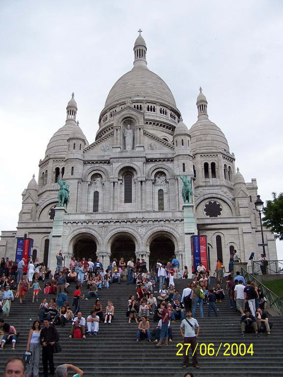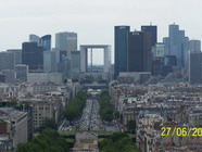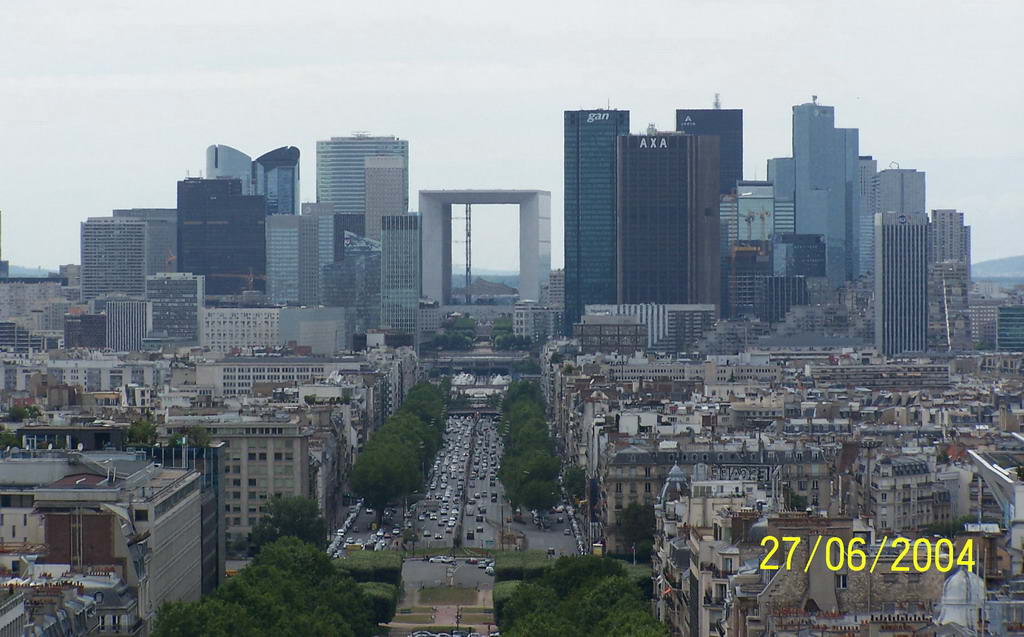 Эту базилику можно увидеть и в кино, например, начав смотреть фильм "Эммануэль". Базилика Сакре-Кер (собор Святого сердца Иисуса Христа) была открыта в 1889 году, на постройку пошел камень из карьеров Шато-Ландон, который под воздействием дождевой воды выделяет белое вещество, кальцит, придающее собору его белоснежную белизну. Собор выстроен в романо-византийском стиле, по сторонам паперти стоят конные статуи Жанны д'Арк и короля Людовика Святого. Можно войти внутрь собора, правда, фотографировать нельзя, и постоянно слышны возгласы охранников "Но фото!". Гранд-Опера, или Парижская опера (официальное название - Национальная академия музыки) - один из наиболее авторитетных академических оперных театров мира. Этот настоящий шедевр архитектуры Второй Империи поражает воображение своим исключительным декоративным богатством, как снаружи, так и внутри. Здесь же, на Оперной площади, на углу бульвара Капуцинов раскинуло свою террасу "Кафе де ля Пэ" (Кафе мира), которое всегда было международным местом встреч литераторов, художников и политиков. С Триумфальной арки хорошо виден (если воспользоваться зумом:-)) квартал небоскребов Дефанс. В центре архитектурного комплекса расположена Большая арка (La Grande Arche), возведенная в память обороны Парижа во время франко-прусской войны (1870-71 гг.).