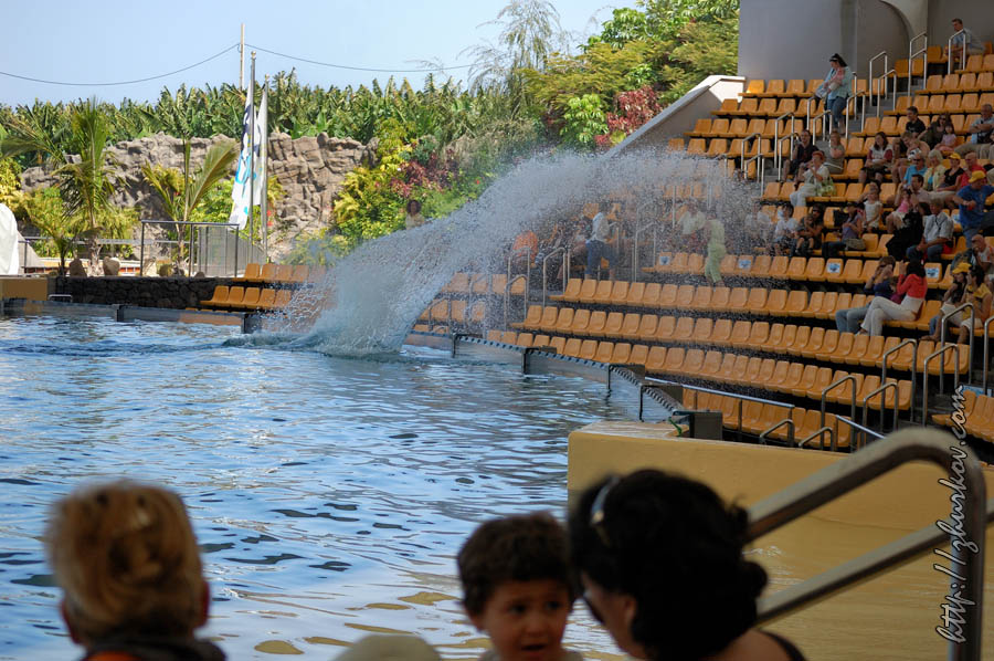 Они проводятся регулярно и за время пребывания в Лоро Парке, на которое надо отвести отдельный день, все можно посмотреть. Шоу рассчитаны на работу со зрителями и многое сделано для детей. В сравнительно молодом шоу с касатками реально можно попасть под освежающий душ из морской воды, на передних рядах сделаны специальные надписи, и выдают водозащитные накидки:) Шоу впечатляет, разработано от начала и до конца идеально, идет видеосопровождение с титрами на трех языках. При подготовке рождественского шоу в конце 2009 года погиб один из тренеров. Шоу же с дельфинами не столь масштабно, но не менее увлекательно, там не только взрослые катаются на дельфинах, но и детей дельфины возят в лодке. Я ни разу не пожалел о посещении Лоро Парка, получил массу впечатлений и позитива, это лучший зоопарк из всего того, что я видел к этому времени.Поскольку весь день я был в Лоро Парке, то Пуэрто дэ ла Крус посмотреть толком не удалось, однако, чувствовалось, что здесь природа побогаче, и прохладнее, нежели на южном побережье, но все равно люди купались и загорали. На пути домой попал в транспортную неразбериху. Так как прямой автобус обратно до Плайя де Лас Америкас (№343) ходит всего четыре раза в день, то на последний, который уходил уже в 17:45, вполне естественно, набралось много туристов, возвращавшихся из Лоро Парка. Я вошел в автобус, но оказалось, что водитель не рассчитал количество оставшихся мест, и, пройдя по салону, я ни одного свободного места не нашел. Проезд же на входе мной уже был оплачен картой Bono Bus - отсюда возникли все приключения.