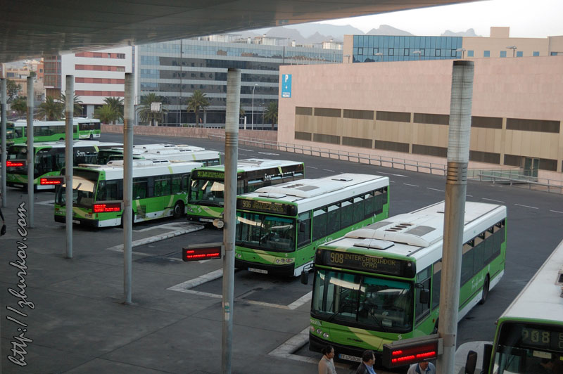 Тенерифе Тенерифе (Tenerife) - один из семи островов Канарского архипелага, ок. 900 тыс. жителей. Самый большой по величине и населенности, а также лидер по посещаемости туристами, число которых в настоящее время достигает пяти миллионов в год. В марте 2008 года я находился в Германии, и к своему небольшому юбилейчику (о, боже, - четвертый десяток, ну и дела:)) решил сделать себе презент в виде первой поездки на Канарские острова. Выбор пал на Тенерифе, как самый известный и доступный остров. Путешествие планировал за несколько месяцев, еще в предыдущем году, потому полет выходил относительно дешевым - авиабилеты туда/обратно на RYANAIR, включая автобус Дармштадт<–>аэропорт Frankfurt Hahn, стоили всего ~130€. Во Frankfurt Hahn перед отлетом все завалило снегом, что наш самолет, направлявшийся на острова "вечной весны", даже пришлось поливать специальным составом пока готовились к взлету. Полет из зимы в лето был довольно долгим, мне показалось, что даже дольше, чем между Томском и Москвой, самолет прилетал в южный аэропорт Тенерифе - Tenerife Sur (Reina Sofia, TFS), ныне это основной аэропорт Тенерифе, сюда есть даже регулярные российские рейсы (S7). Из аэропорта во все уголки острова можно добраться на зеленых автобусах (guagua) местного перевозчика TITSA, автобусы комфортабельные, с кондиционерами, которые иной раз так сильно работают, что замерзаешь:) Прежде чем ехать в одном из аэропортовых магазинов купил предоплатную карту Bono Bus - по ней и так сравнительно недорогая стоимость поездки получается гораздо дешевле, узнать, в каком магазине их продают, можно в Information.