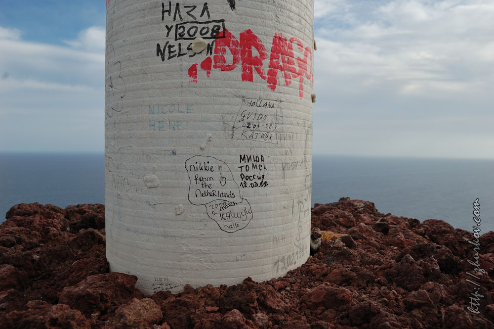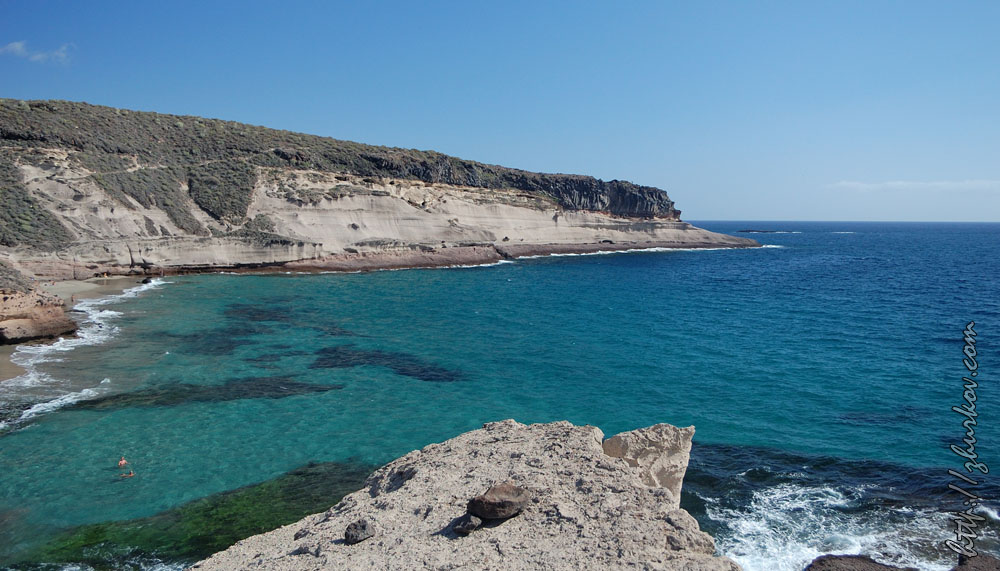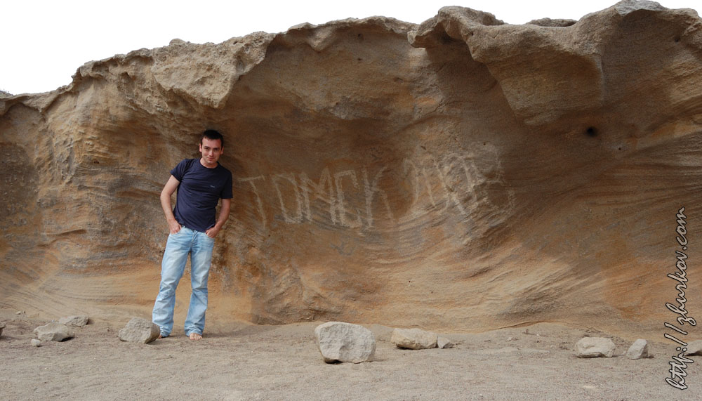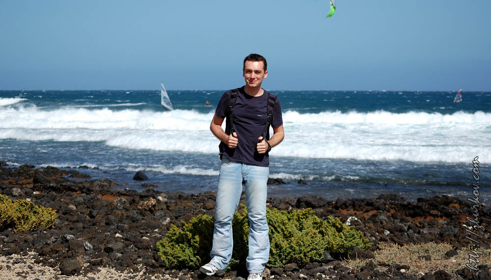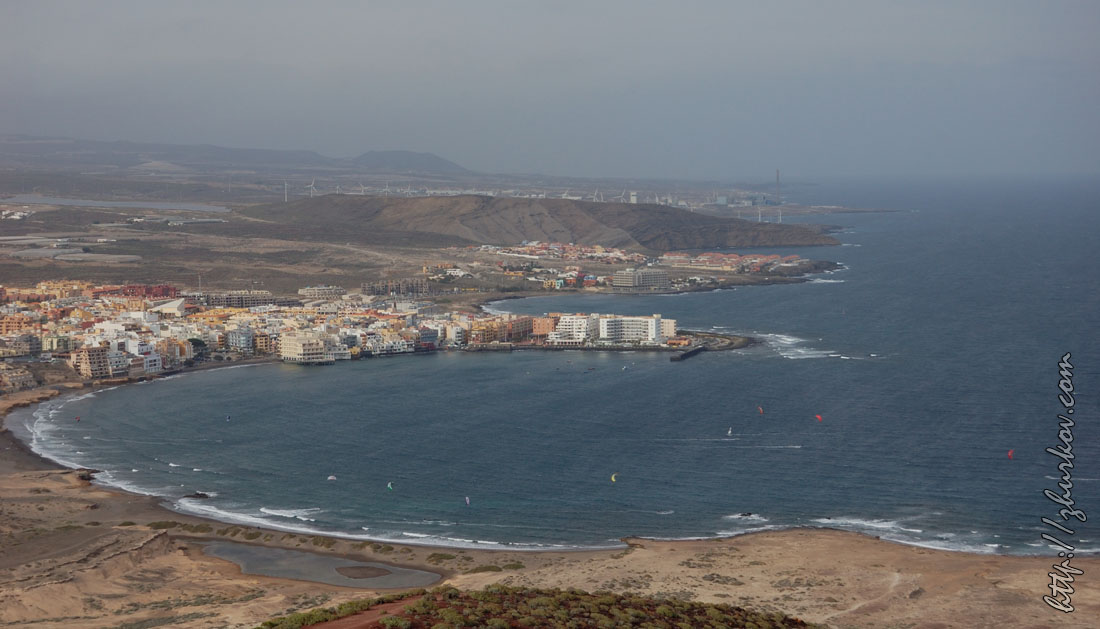 ![]() В ожидании обратного автобуса пошлялся по большому супермаркету El Corte Inglés напротив автобусной станции, реклама которого встречается по всему острову, - показалось, что все там недешево:) Также здесь рядом можно увидеть здание концертного зала Auditorio de Tenerife (1997), которое стало полноправным символом Тенерифе, таким же как и опера в Сиднее. Автовокзал здесь мне запомнился самым ужасным капучино, который я когда-либо пил. Хоть он и был в меню, но, видать, не так часто его у них заказывают, потому пену на хреновастый сам по себе кофе мне намутили из баллончика со взбитыми сливками, посыпали молотым кофе и положили несколько цельных кофейных зерен сверху, вместо того чтобы посыпать шоколадом:)На все путешествие в эти два столичных города Тенерифе ушел целый день, и я вернулся в отель, когда уже стемнело. ![]() Естественно, между поездок ходил купаться и загорать, очень быстро обгорел, не предполагая, что здесь такое сильное солнце - поскольку жары особой как бы нет, потому не чувствуешь, как сгораешь. В самой Costa Adeje смотреть нечего, это все же больше пляжное место, развлечений тоже мало, в основном ночная жизнь бурлит в Playa de las Américas. Если пройти вдоль побережья на северо-запад, то можно увидеть красивый дикий пляж Playa de Diego Hernández, находящийся в охраняемой природной зоне недалеко от La Caleta. Мне там очень понравилось - тишина, спокойствие, минимум отдыхающих, благодаря тому, что из Адэхэ топать дотуда долго, а вблизи отелей мало. Недалеко от аэропорта Reina Sofia находится поселок Эль Мэдано (El Médano) - произносится с ударением на первый слог, когда я сказал мэдАно, то водитель автобуса не понял, про что я ему говорю;) Место известно своими одними из самых больших пляжами на Тенерифе - Playa del Médano и Playa de la Tejita. Добраться туда можно на автобусе, который по пути проезжает местечко Golf del Sur с множеством полей для гольфа.Отдых в El Médano тоже имеет свою направленность - в основном это активный отдых на воде. Поскольку в этом месте всегда дуют ветра, то оно облюбовано виндсерфингистами, кайтсерфингистами, а также ветряными электростанциями. Порывы ветра бывают очень сильными, что того и гляди унесет кепку, солнечные очки или еще какие-нить легкие вещи, на приведенной фотке, вон, как у меня штаны раздуло парусом:) Поскольку песка вокруг много, то и он забивается во все щели.![]() Рядом находится гора Montaña Roja (Красная гора), она на самом деле красноватая, даже по фоткам видно, это также был когда-то вулкан. Отдыхать на указанных пляжах, расположенных как раз по обе стороны этой горы, на мой взгляд, не очень, ибо слишком уж сильно дует ветер, потому для пляжного отдыха это место мало подходит. У подножья горы сохранились со времен второй мировой войны ДОТы. По сложившейся традиции пребывания на морских курортах там оставил автограф, мол, и здесь мы были:)Если забраться на гору, то все окрестности, включая аэропорт, как на ладони. Советую совершить подъем, тем более сделать это совсем несложно. На вершине установлен столб, который задействован под различного рода автографы туристами разных лет, не мог не посодействовать продолжению интернациональной традиции:) Спустившись вниз, походил по поселку и перекусил вот этим (фото:)) также взял салат с рыбой, яйцом и майонезом, который там почему-то назвали "русский салат":) За все время пребывания на Тенерифе с питанием проблем не было, в суперма
