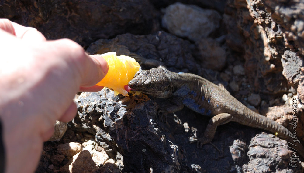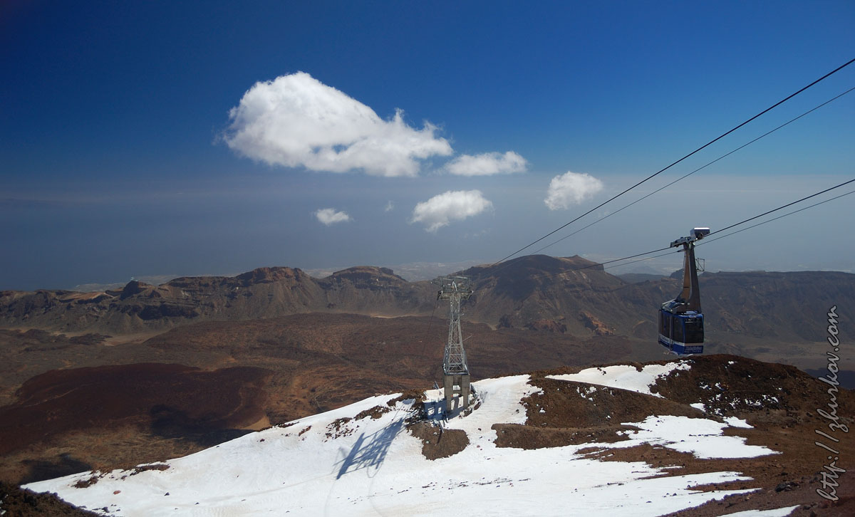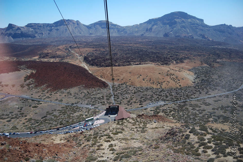 Между камней снуют ящерицы, которые почти не боятся людей, одну из них покормил апельсином:)Дальше предстояло добраться до фуникулера (Teleférico del Teide), чтобы подняться на вершину пика Тейде, вот тут стало проблемой то, что автобус ходит всего раз в день, - пришлось туда идти пешком, а это весьма неблизко и времени занимает больше часа%) Потому, если решили смотреть Тейде самостоятельно (не с экскурсией) и не дружите со спортом, то лучше ехать в путешествие на своем авто. Подъем начинается с высоты 2356 м, время в пути 8 минут, стоимость проезда была не дешевой - 24€ для взрослых, билет действует в течение часа.