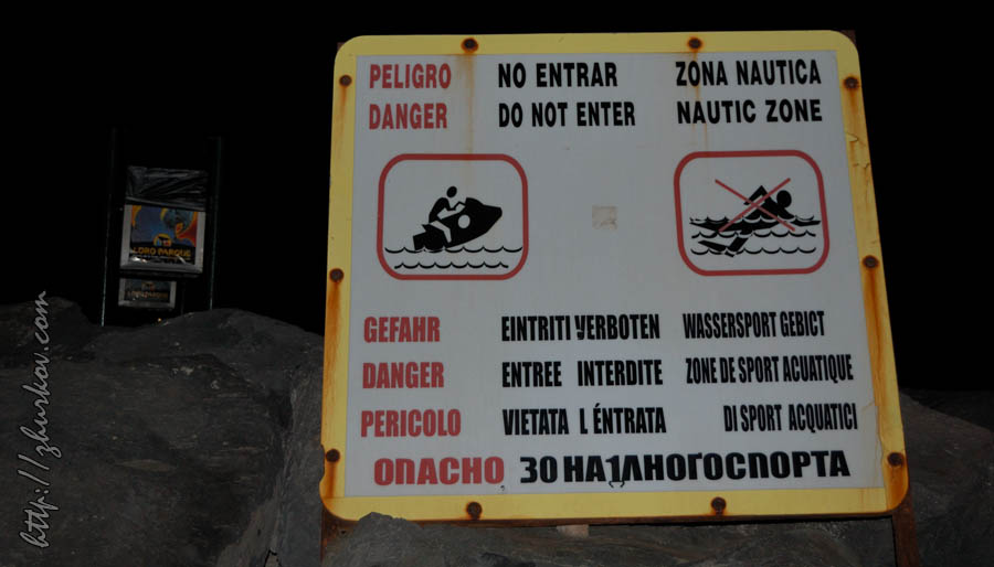 В стоимость входила бесплатная парковка, но у меня авто не было, потому она мне не понадобилась. Отелю бы я не дал 4*, скорее по совокупности ощущений это твердая 3*. Месторасположение отеля очень хорошее - прямо рядом с берегом океана, до пляжа и остановок транспорта рукой подать.Несмотря на март месяц, было весьма тепло, градусники показывали 23-30 градусов тепла, многие купались, хотя вода, прямо скажем, была не совсем уж и теплая (градусов +20-22). Пляжи песчаные бесплатные и хорошо обустроенные, лежаки и зонты платные, но никто не запрещает приходить со своими. Встречаются весьма смешные таблички, на которых испанцы пытаются писать на разных языках, в т.ч. и на русском:) Например, на приведенной здесь, если бы не рисунок, понять, о чем идет речь, было бы весьма затруднительно:)