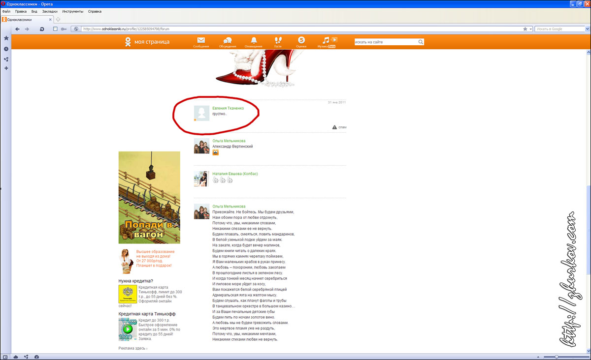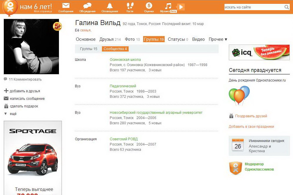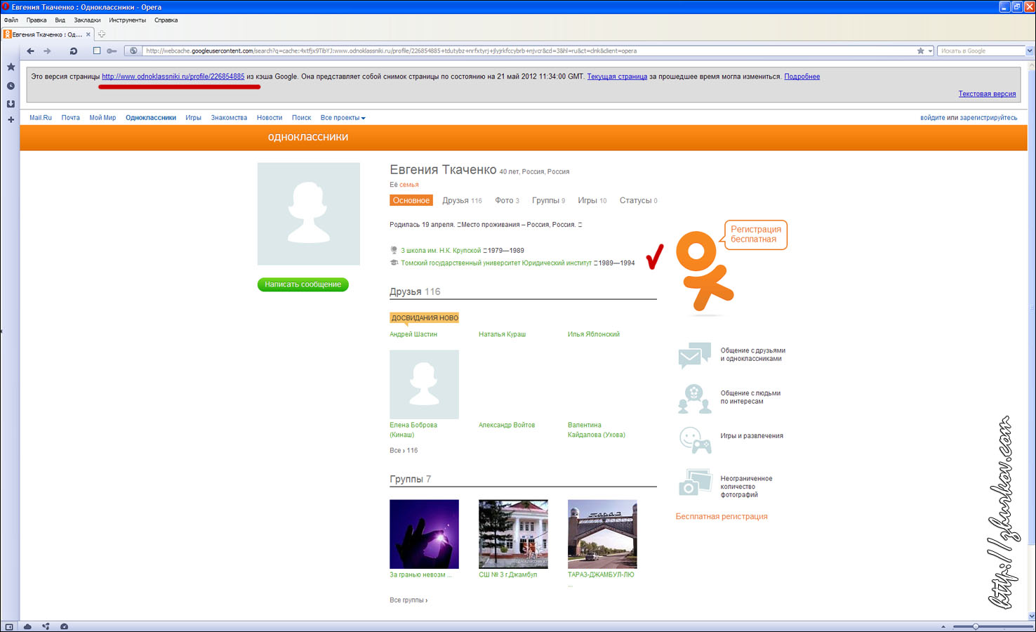Правильно, ведь, чего мелочиться, врать, так врать: Калинина уже не только заработала сотрясение мозга, конечно же, предварительно потеряв сознание, но и на несколько дней после этого вообще слегла в больницу:) Аналогичные пояснения дала Бондарчук (здесь надо обратиь внимание, что Бондарчук говорит, что не видела момента "нанесения побоев"). Клеветническое же письмо якобы таковым вовсе не является, а является "информационным", правда, как направление таких писем согласуется с должностными обязанностями Мозеля, указать забыли.Но особо позабавила формулировка, которую выдал на-гора указанный следователь, опросив только меня и эту троицу, сляпавшую клеветническое письмецо: в возбуждении дела отказать, т.к. "изложенные в письме события имели место в действительности". Так вот - ни больше, ни меньше. Если бы следователи всегда опрашивали только преступников, и на основании их оправданий выносили свои постановления, не опросив даже других свидетелей, то наверняка нам давно бы стали не нужны ни Савенков, ни вся остальная многочисленная армия так называемых "правоохранителей". Я подал жалобу на это постановление, на что, видать, более грамотный следователь Телегин 10.06.2011 выписал уже вполне законную отмазку - мол, Мозель написал это письмо с чужих слов, поэтому не может быть привлечен к уголовной ответственности по данной статье:) Знакомые потуги, по-моему, у нас уже был какой-то чиновник из ПЖиВ, он тоже "добросовестно заблуждался", с телеэкранов поливая грязью, к сожалению, не могу найти ссылку на это.Кроме того, в этом ответе мне написали, что результаты проверки переслали в УВД, чтобы те возбудили дело по поводу нанесения побоев уже в отношении меня. Я не стал придавать этому значения, думал, что поскольку в действительности я ее не бил, то и переживать нечего. После переписки с СК РФ стало ясно, что Мозель в любом случае выйдет чистеньким после содеянного, а к уголовной ответственности можно привлечь только тех, с чьих якобы слов это письмо написано, т.е. надо было идти и возбуждать дело частного обвинения непосредственно в суде и привлекать Калинину. Я решил не заморачиваться летом по данному поводу, ибо был запланирован отпуск, а в сентябре с новыми силами думал заняться привлечением к ответственности преступниц из администрации Советского района. Уголовное дело: дознаватель Вильд Галина Иосифовна О ней и ведении ею дела надо говорить отдельно. Долговязая дамочка примерно моего возраста, как свидетельствует сайт Одноклассники (скриншот), пришедшая работать в УВД после аграрного университета.12 июля 2011 года рано утром меня разбудил звонок на мой мобильный телефон, оказалось, звонила ст. дознаватель отдела дознания отдела милиции №3 Советского РОВД г. Томска Вильд Г.И. Она мне сообщила, что в отношении меня возбУждено уголовное дело, и мне надо явиться к ней для дачи показаний, тут же пожалилась, что ей дорого звонить мне на TELE2. Здесь лежит аудиозапись этого звонка. Придя на допрос, увидев бумаги о назначении экспертизы с майскими датами на них, я сразу же спросил, почему в нарушение УПК РФ меня не уведомили о том, что в отношении меня возбуждено уголовное дело, ведь прошло уже более 2х месяцев, т.е. было нарушено мое конституционное право на защиту, я не мог подготовиться к допросу, выбрать адвоката, уже запланировал дела и так далее. Естестве