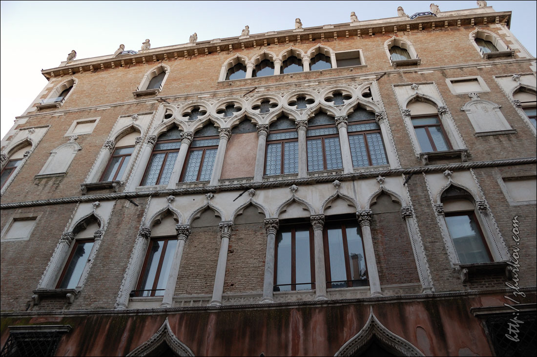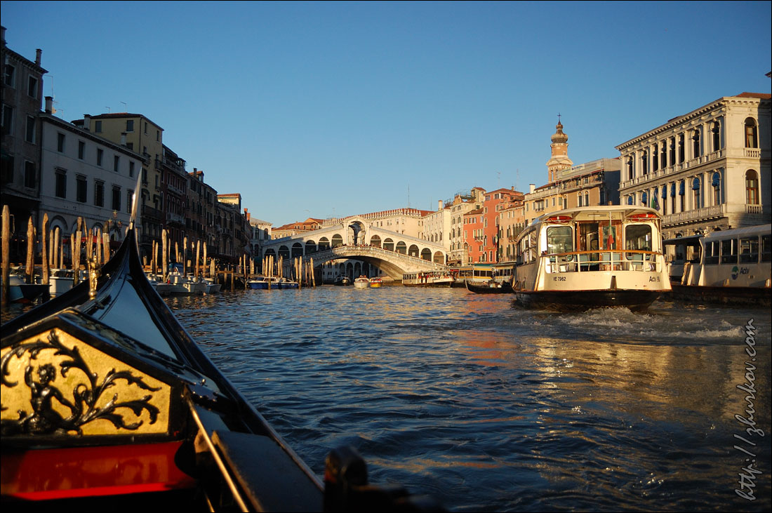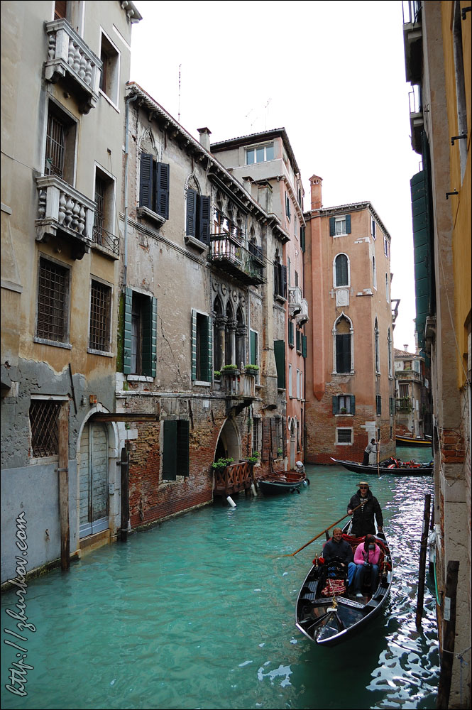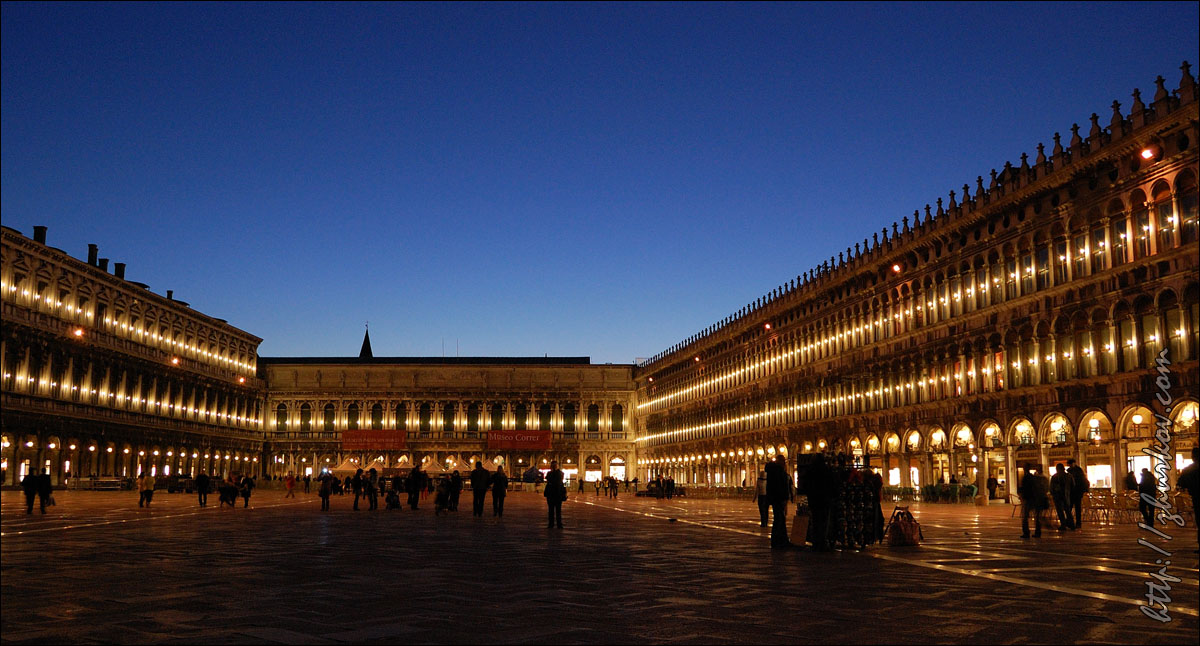 Кремлевскими стенами, которые возводили также итальянские архитекторы, а именно, и там и там стены украшены "гибеллиновыми” зубцами (в виде "ласточкиного хвоста"), что сразу привлекает внимание.В завершение поездки решили прокатиться на гондоле, а то явно только этого не хватало в столь коротком, но красивом путешествии:)) Прогулка на символе Венеции - удовольствие не из дешевых, стоило около 100€, уговорили гондольера 20 минут покатать за 25€:)) Воды в каналах было мало, где-то по колено, в то время как нормальный уровень, по словам гондольера, около двух метров, из-за этого фундаменты домов обнажились и находились перед нашими глазами, при этом почувствовали, какая же вода все-таки там вонючая:) Гондольер был маленький, толстый, лысый, плюс то ли выпивший, то ли сам по себе такой, но пытался рассказать, мимо чего проезжаем - место, где жил дож Людовико Манин с семьей (сейчас здесь банк), "Мост вздохов", Дворец дожей, дом Казановы, отвечал на наши немногочисленные вопросы, иногда переговариваясь с другими гондольерами, а при выезде из канала громко орал, чтобы не было аварии:) Вечером у меня был самолет, перед самолетом сходил на набережную и Сан-Марко, вечером эта площадь просто прекрасна, не зря Наполеон назвал ее самой элегантной гостиной Европы, соответственно, получились красивые фотки.Наверное, можно было предположить, что автобус в аэропорт придет не вовремя, но я понаделся на расписание, и... автобус вообще не пришел:) Это, конечно, дало повод поматерить итальяшек и понервничать, ведь особого запаса по времени у меня не было, а следующий автобус был только через полчаса. Слава богу, он подошел, и никаких пробок по дороге не было, потому в аэропорту еще успел выпить вкусного итальянского капучино, который тут очень дешев (для аэропорта цена в 1,35€ - это практически даром) и удовлетворенно расслабиться. Венеция мне понравилась, и не только мне - всем, кто ездил тогда, поездка очень запомнилась, после Венеции та же известная всем Барселона уже смотрелась несколько шаблонно и уныло.В моем рейтинге городов, которые я видел своими глазами, по сей день Венеция пока что находится на 1-м месте, нигде не было столько впечатлений от архитектуры города и таких необычных, запоминающихся ощущений от его атмосферы. Даже несмотря на толпы туристов, от чего коренные жители уезжают в более спокойные города, Венеция покоряет и запоминается. Март, 2011 г. Назад на страницу Италия |
