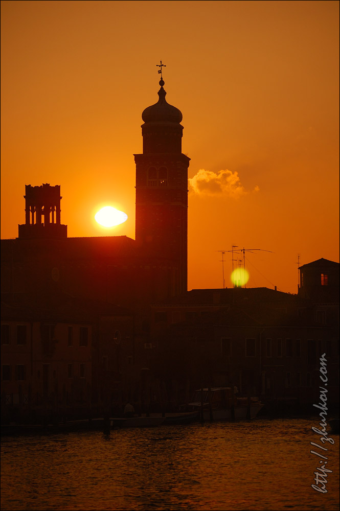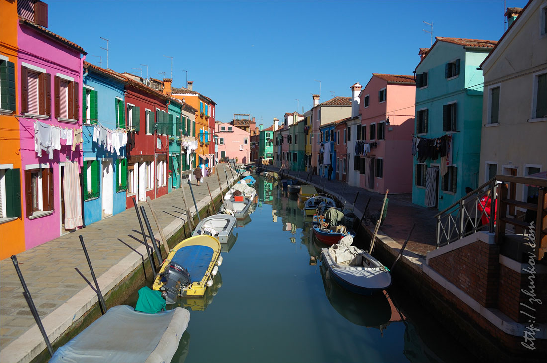 В общем и целом, в "малой Венеции" мне показалось тише и спокойнее, жизнь более естественна, поскольку нет таких толп туристов, как в центре.В кафе поели итальянские спагетти, попили кофе, который в Италии просто великолепен, при этом стоит весьма дешево. На обратном пути на вапоретто у нас проверили билеты, вообще, вроде бы не много ездили, но билеты очень часто проверяли, так что "зайцем" ездить там не советую. На следующий день решили поехать по другим островам - Сан-Джорджо, Бурано и Торчелло. Остров Сан Джорджо (Isola di San Giorgio Maggiore) находится напротив Сан-Марко, и наравне с Риальто тамошняя базилика есть на фотках у всех приезжих. Остров передали под монастырь еще в 982 году, нынешнее здание базилики Сан-Джорджо Маджоре (Basilica di San Giorgio Maggiore, 1565-1610) было построено известным итальянским архитектором эпохи позднего Возрождения Андреа Палладио. Рядом расположена колокольня, которую построил Бенедетто Бурати (1791 г), т.к. старая колокольня рухнула, что часто бывало в Венеции. Это одна из крупнейших церквей Венеции. Мы посмотрели ее снаружи и внутри. С острова открывается открыточный вид на Сан-Марко, рядом припаркованы всяческие яхты. До Бурано (Burano) на вапоретто добирались больше часа, смотреть там особо нечего, кроме как домики, раскрашенные яркими красками. По легенде дома раскрашены так, чтобы рыбак издалека видел свой дом (Бурано - остров рыбаков).